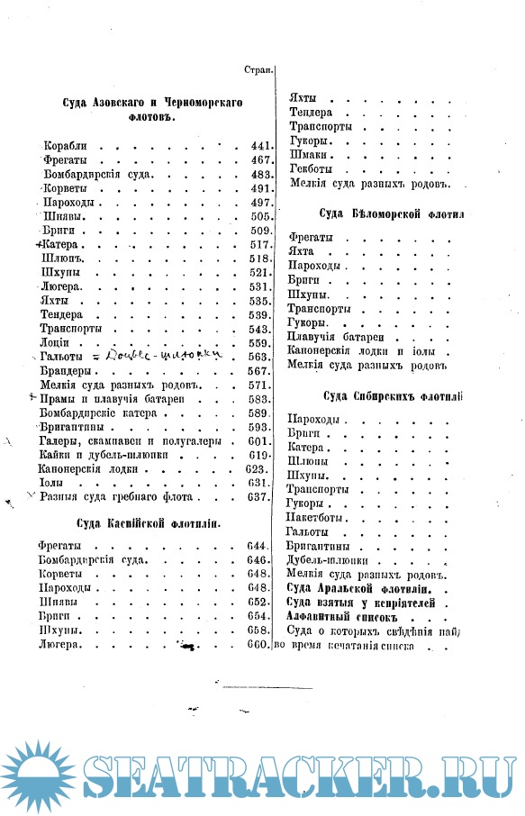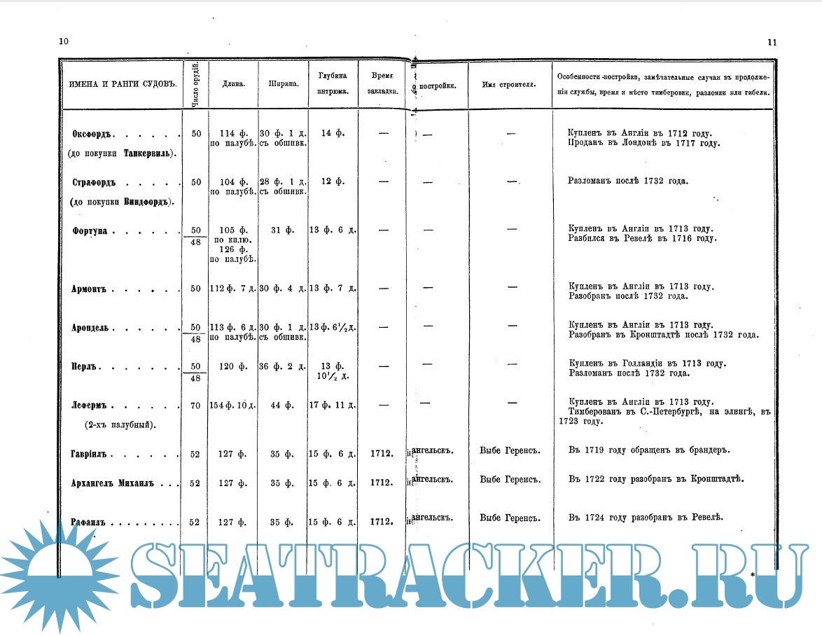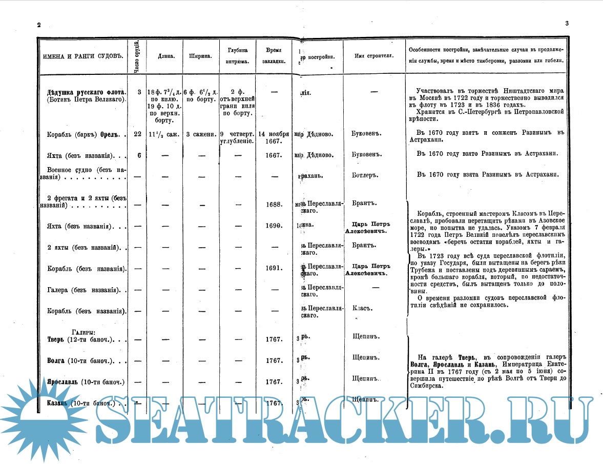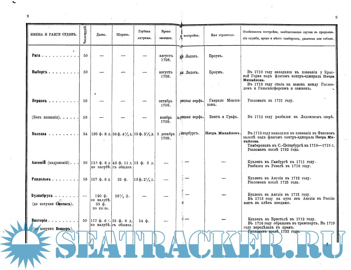 «Список» содержит ценные сведения о судах, в его графах указаны имена и ранги судов, число орудий, длина и ширина судна, место и время постройки и др.