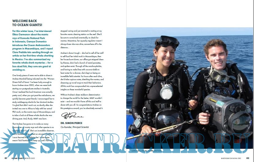 Description: For this winter issue, I’ve interviewed Elitza Germanov about the manta rays of Komodo National Park in Indonesia, Genaye Domenico introduces the Ocean Ambassadors program in Mozambique, and I roped Clare Prebble into sending through an article on her first time whale-sharking in Mexico. I’ve also summarized my favorite whale shark mysteries – for a bus-sized fish, they sure are good at avoiding us.