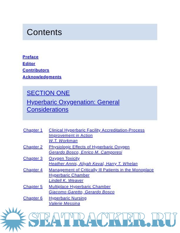 This book will be an important addition to the library of physicians in clinical hyperbaric medicine and those involved with divers—recreational, commercial, and military—as well as other professionals who care for them.