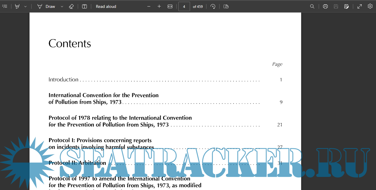 Year: 2011 Language: english Author: INTERNATIONAL MARITIME ORGANIZATION Genre: Reference book Format: PDF Quality: Scanned pages + text layer Pages count: 459 Description: Articles, Protocols, Annexes and Unified Interpretations of the International Convention for the Prevention of Pollution from Ships, 1973, as modified by the 1978 and 1997 Protocols
