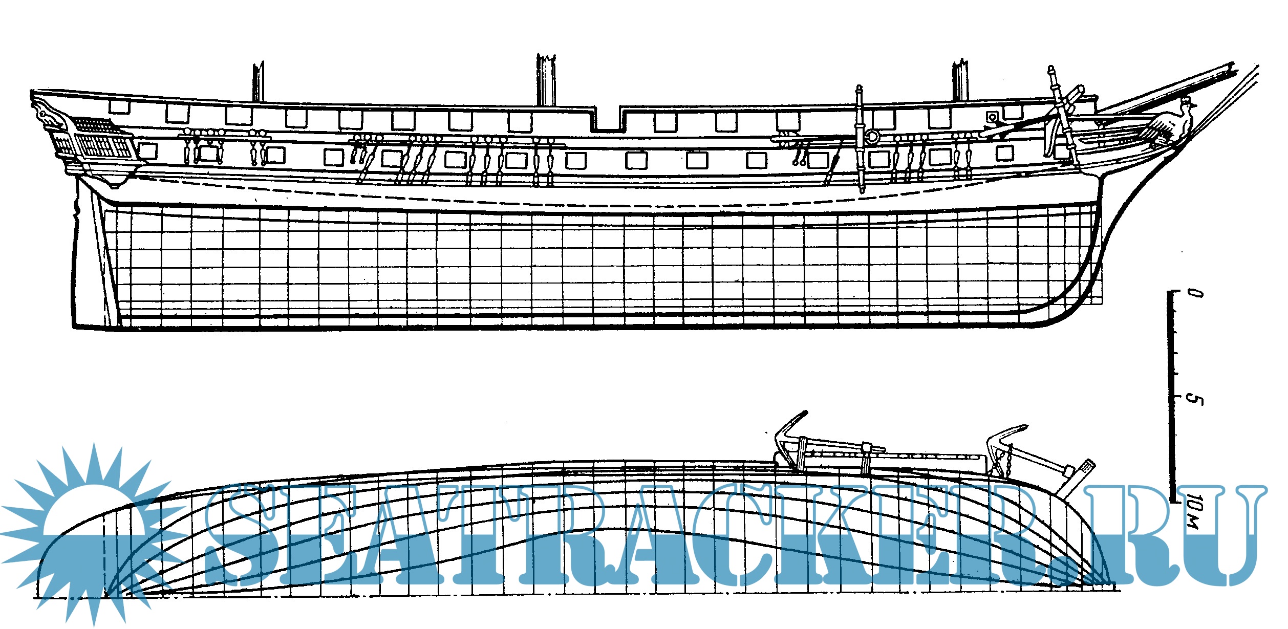 Чертежи фрегата "АВРОРА" 1833 год