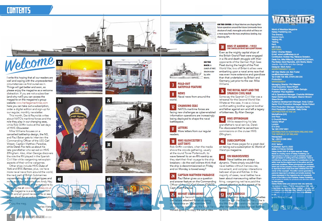 Year: 2020 Language: english Author: Charles Waters (Edtor) Genre: Periodical (magazine) Edition: 2020-05 Format: PDF Quality: eBook Pages count: 56 Description: This 56-page magazine will cover such battles and battleships starting with the steel-clad warships of the 1900s, up to the modern day rulers of the seas – the highly sophisticated aircraft carriers and submarines of today. We will have a Naval news section from around the world, features on famous people, conflict at sea, fascinating historical accounts and exciting places of interest that you can visit today. World of Warships will also feature some excellent naval paintings from the brushes and easels of leading Naval artists, plus superb, highly detailed, fold-out, triple gatefolds, featuring profile artworks in every issue, created by Andrew Hay. The main thrust will of course be warships, encompassing destroyers, dreadnoughts, frigates, carriers, submarines et al, and their place in global naval history.