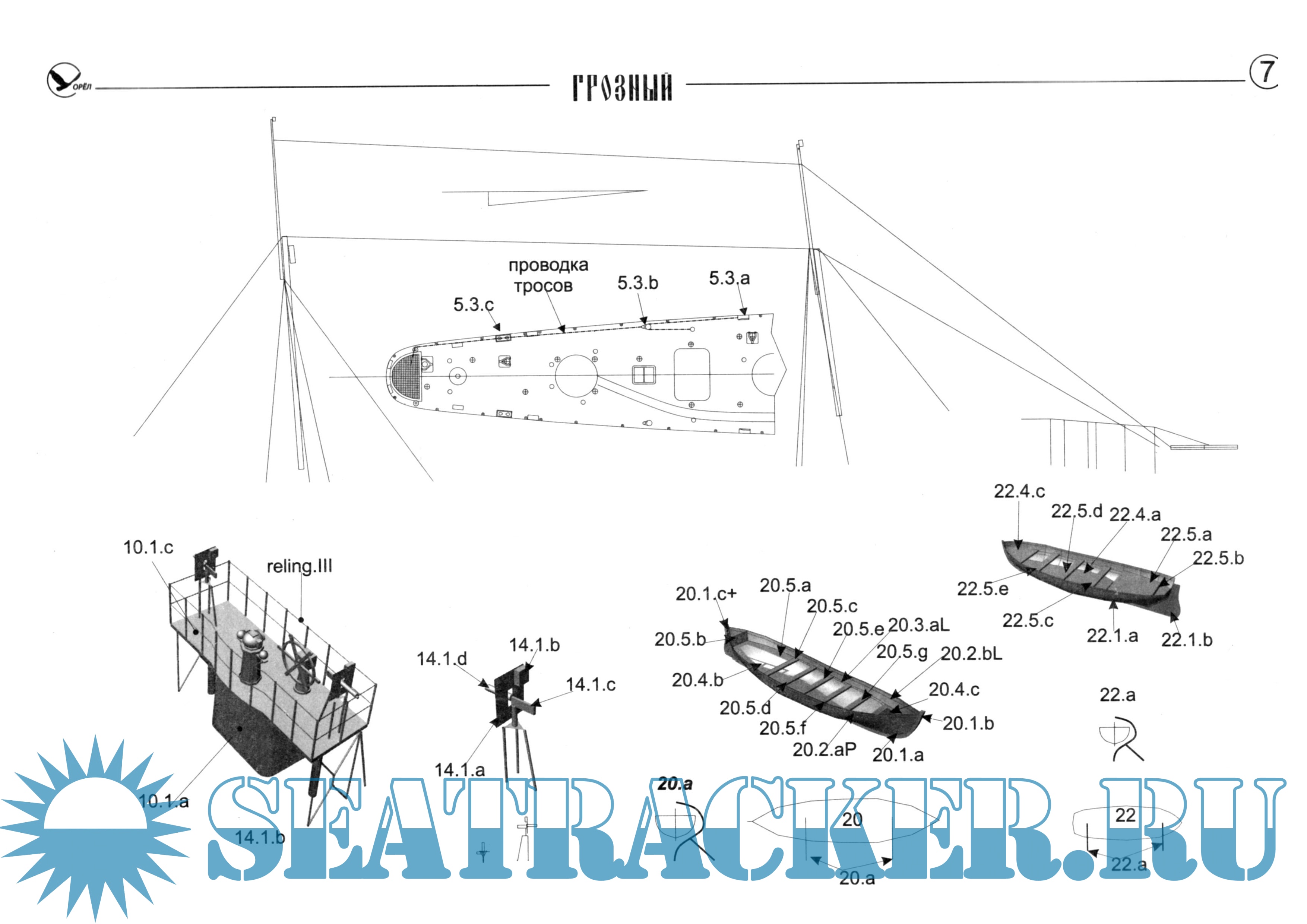 11 листов цветных выкроек и инструкций для изготовления бумажной модели эсминца Грозный 1904 год в масштабе 1:200Скриншоты