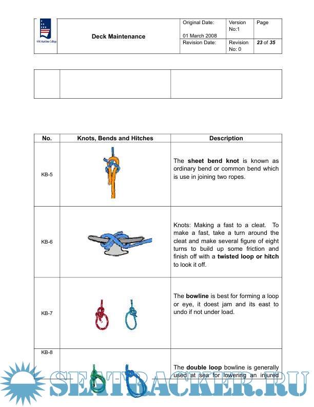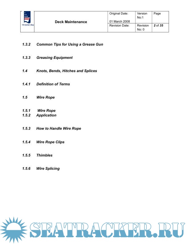 Deck Cadet Booklet for Deck Maintenance, 2008