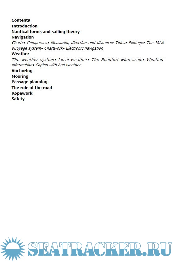 Year: 2017 Language: english Author: Fairhall D. Genre: Manual Publisher: Adlard Coles Edition: 6th ISBN: 1472942965 Format: EPUB Quality: eBook Pages count: 106 Description: Pass Your Day Skipper teaches sailing and boat-handling theory in a practical seagoing manner, with helpful tips to help smooth your test-taking or sail-handling anxiety. Find out how the wind makes your boat move, or how to find your way using nautical charts. You will also understand the rules that govern sea-going vessels, learn all the crazy, nautical lingo, as well as the basic rope and knot work to keep you secure. Pass Your Day Skipper has taught thousands of UK students what they needed to pass their Day Skipper exam. You can use it to learn all you need to know to safely operate and handle your coastal sailboat. Mike Peyton's best-loved cartoons help keep the atmosphere fun. Additional info: About the Author David Fairhall has enjoyed sailing for over 50 years in everything from Dragons to Thames barges. He has raced offshore and made several ocean deliveries, and now sails from Maldon on the East Coast where he lives.