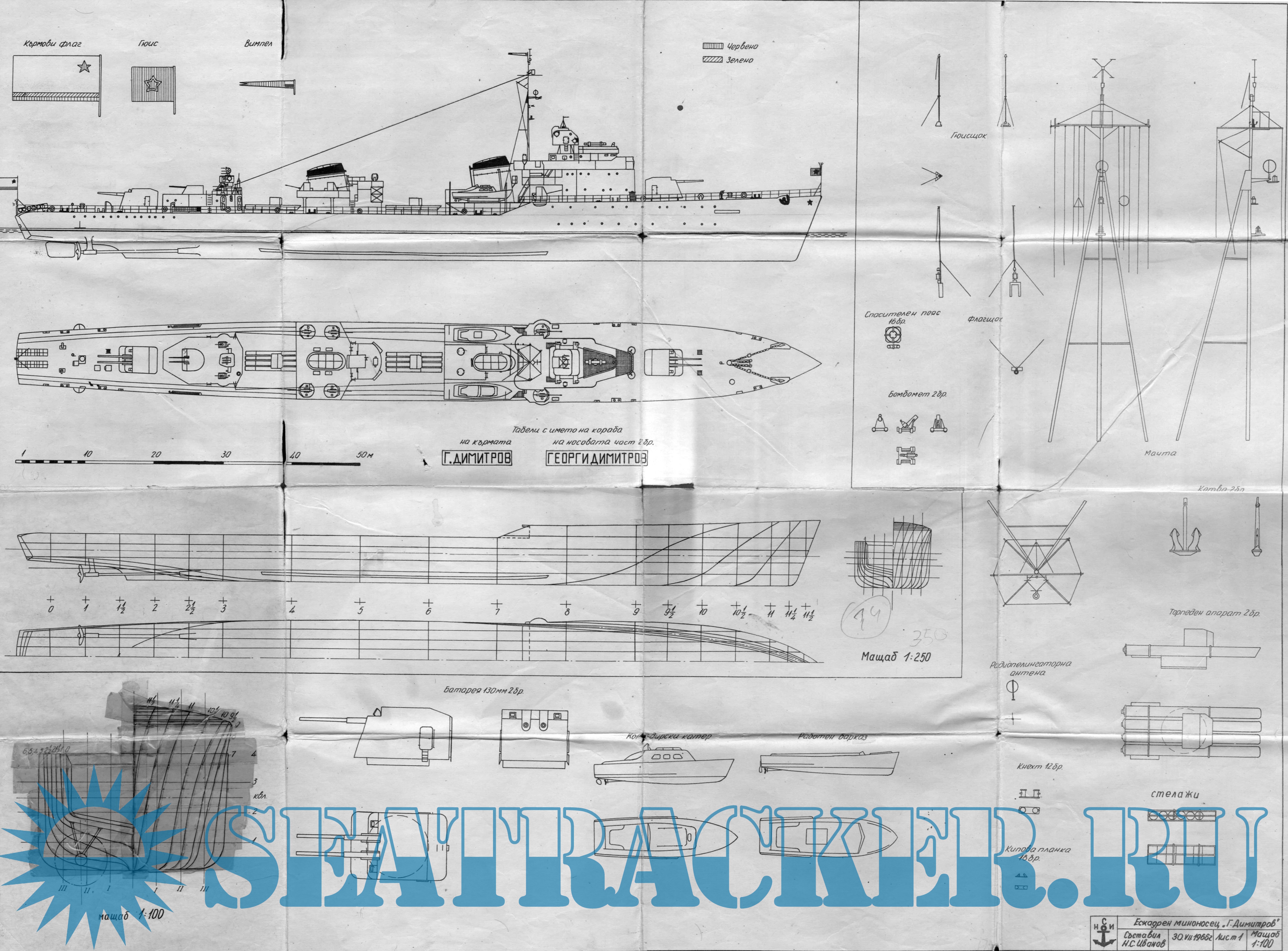 16 листов чертежей в масштабе 1:250 эсминца "Геогий Димитров" проект 7
