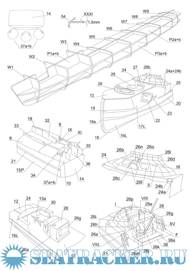 12 листов цветных выкроек и инструкций для изготовления бумажной модели немецкого торпедного катера Schnellboot typu S-100 в масштабе 1:100Скриншоты