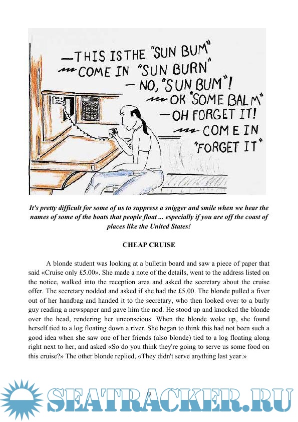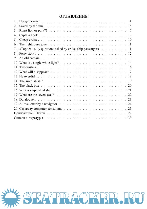 Настоящее учебное пособие предназначено для студентов Московской государственной академии водного транспорта, обучающихся по специальности «Судовождение», достаточно овладевших основами грамматики английского языка. Шутки и короткие рассказы, представленные в данном пособии, направлены на реализацию потребностей обучаемого в самостоятельном чтении для удовольствия, однако, они могут быть использованы в учебном процессе как основа для игровых ситуаций и обсуждений.