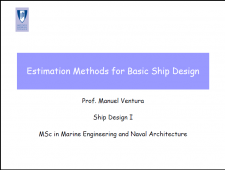 Ship design methodology. Dimensioning of ships. Optimization methods. Measures of merit. Design restrictions. Rules, regulations and conventions and their impact on the design. Estimation methods for ship design: lightship weight, volumes, hydrostatic characteristics and intact stability, propulsion power, costs. Hull form development. Basic method, parent ship and systematic series.