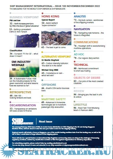 Year: 2022 Language: english Author: SMI Genre: Periodical (magazine) Edition: Issue No. 100 Format: PDF Quality: eBook Pages count: 92 Description: Ship Management International is published bi-monthly and read by the world’s ship owners, operators and ship managers at chief executive and managing director level. It is the only ship owner business magazine in the industry dedicated to covering the entire editorial needs of the owner and the manager at senior executive level and is seen as essential reading for this vibrant and fast-moving industry sector. Hard-hitting articles plus in-depth research and analysis aim to educate and update today’s ship owners and managers on the issues affecting the way they manage their fleets. Regular coverage includes policy and regulation, profit and loss analysis, manning, technical and commercial developments as well as financial analysis together with business management and trade route assessment. The finest maritime writers and industry experts ensure that Ship Management International fulfills its pledge to be the most dynamic and essential shipmanagement magazine in the world. Additional info: SMI celebrates 100th issue.