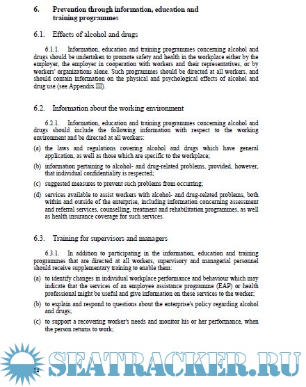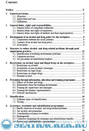 Description: Problems relating to alcohol and drugs may arise as a consequence of personal, family or social factors, or from certain work situations, or from a combination of these elements. Such problems not only have an adverse effect on the health and well-being of workers, but may also cause many work-related problems including a deterioration in job performance. Given that there are multiple causes of alcohol- and drug-related problems, there are consequently multiple approaches to prevention, assistance, treatment and rehabilitation.