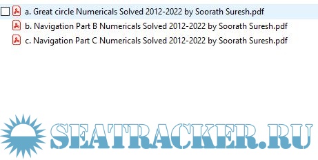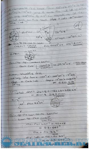 Year: 2022 Language: english Author: Soorath Suresh Format: JPEG Quality: Photo of pages Pages count: Multiple Description: Paper: Terrestrial and Coastal Navigation Solved Numericals (2022-2012) from Past Question Papers of Mercantile Marine Department (MMD), India Examinations for Phase I (Chief Mate F.G.) Topics covered: 1. Great Circle 2. Part B Numericals 3. Part C Numericals