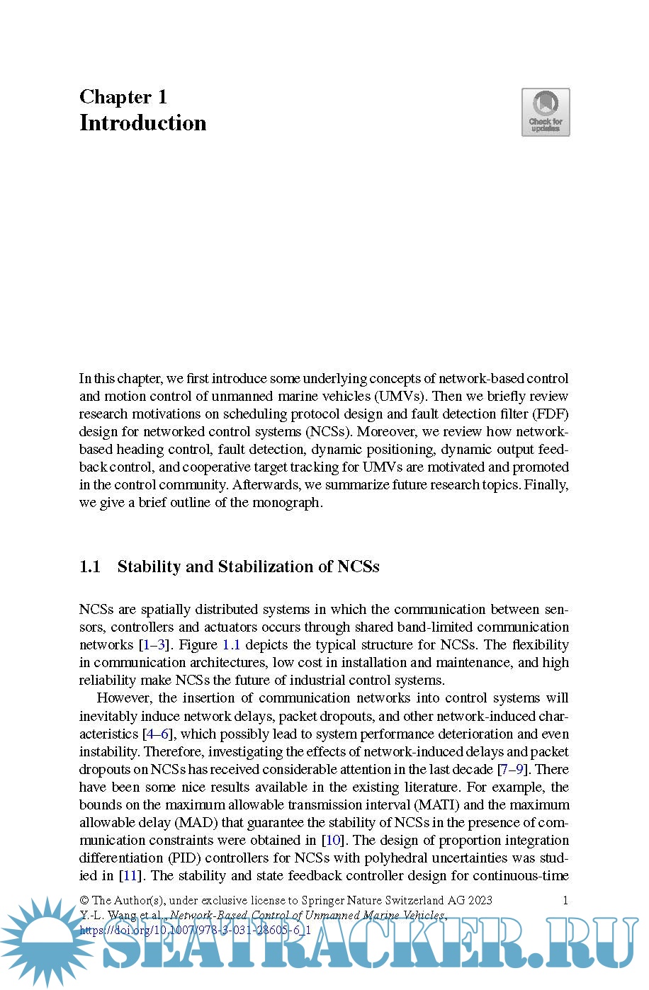 Year: 2023 Language: english Author: Yu-Long Wang and Others Genre: Research papers Publisher: Springer Edition: 1st (May 3, 2023) ISBN: 9783031286049 Format: PDF Quality: eBook Pages count: 212 Description: This book presents a comprehensive analysis of stability, stabilization, and fault detection in networked control systems, with a focus on unmanned marine vehicles. It investigates the challenges of network-based control in areas like heading control, fault detection filter and controller design, dynamic positioning, and cooperative target tracking. Communication networks in control systems can induce delays and dropouts, so the book presents the importance of stability analysis, stabilize, and fault detection. To help readers gain a deeper understanding of these concepts, the book provides fundamental concepts and real-world examples. This book is a valuable resource for researchers and practitioners working in the field of network-based control for unmanned marine vehicles.