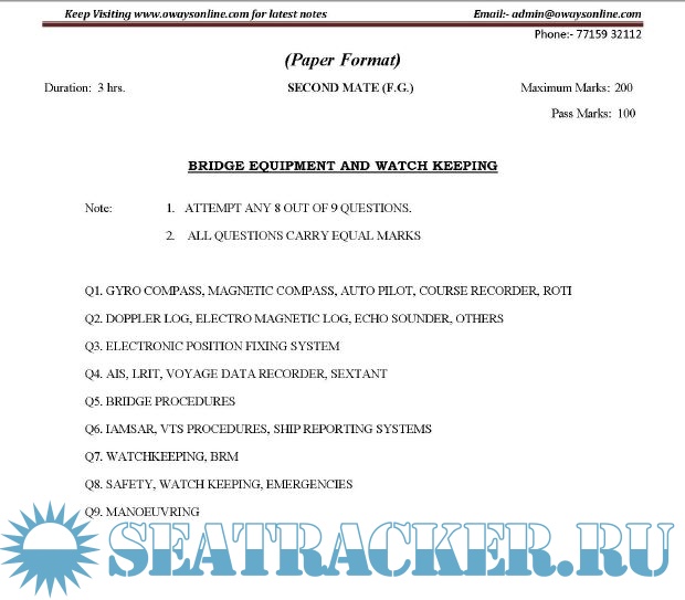 Question Paper Set for Bridge Equipment and Watchkeeping (July 2022) for Second Mate (F.G.)…