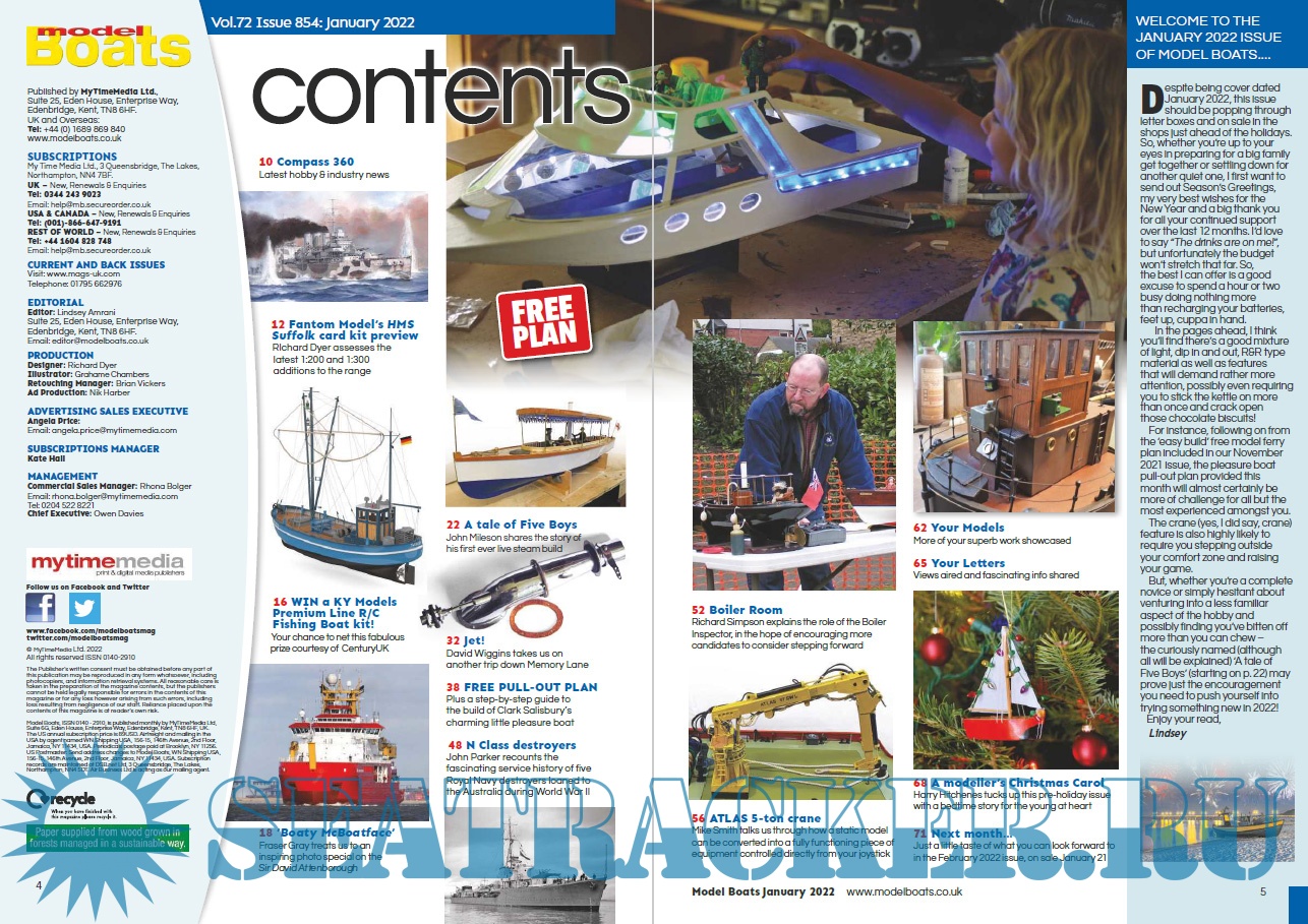 Description: Model Boats magazine is a practical and informative read for those with a love for the hobby. It covers the latest news and views from the various clubs and associations around the country, useful hints, tips and step by step guides for those interested in the art of constructing a model boat as well as tests and recommendations of new boats and tools. Floating along behind these are great special features examining in depth different models from narrowboat to destroyer!