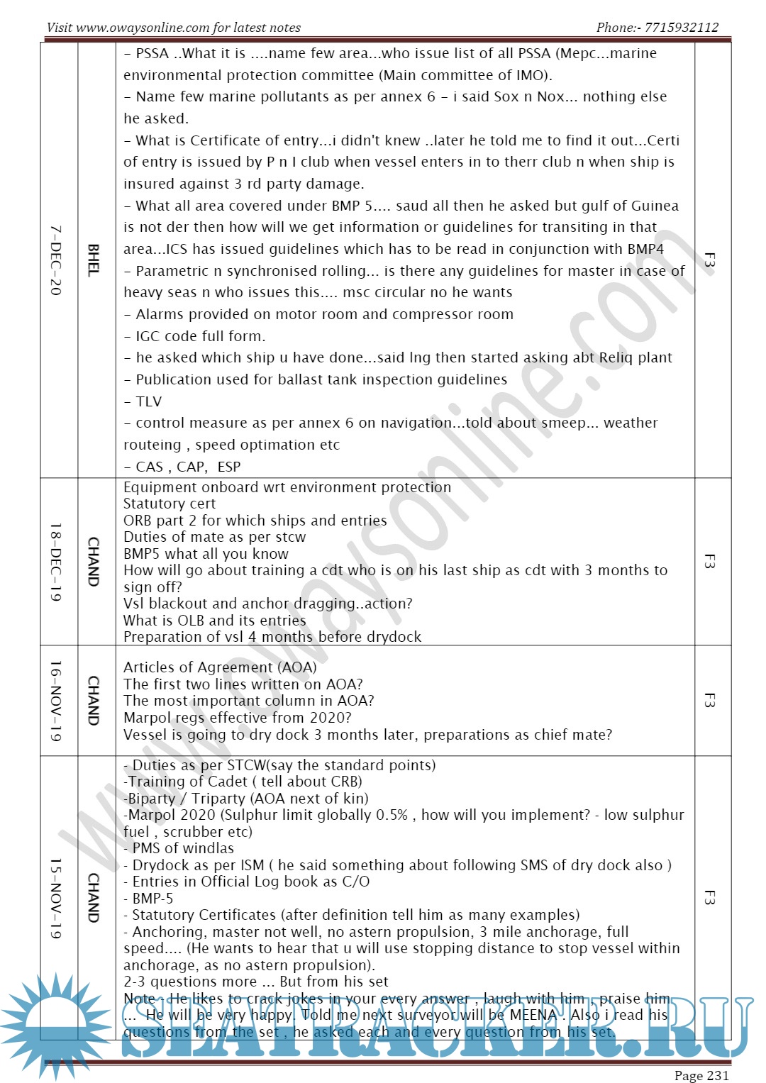 Description: Orals Question Bank for Chief Mate F.G. Mercantile Marine Department (MMD), India Examinations.
