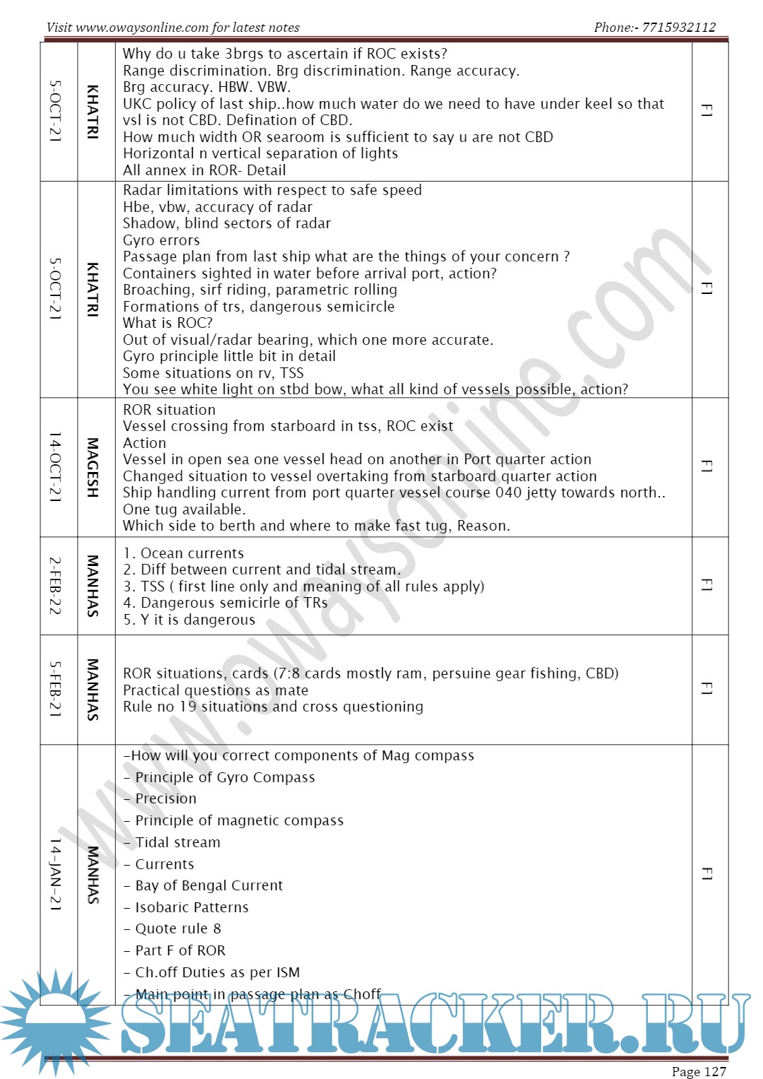 Orals Question Bank (April 2023) for Chief Mate F.G. Mercantile Marine Department (MMD), India Examinations