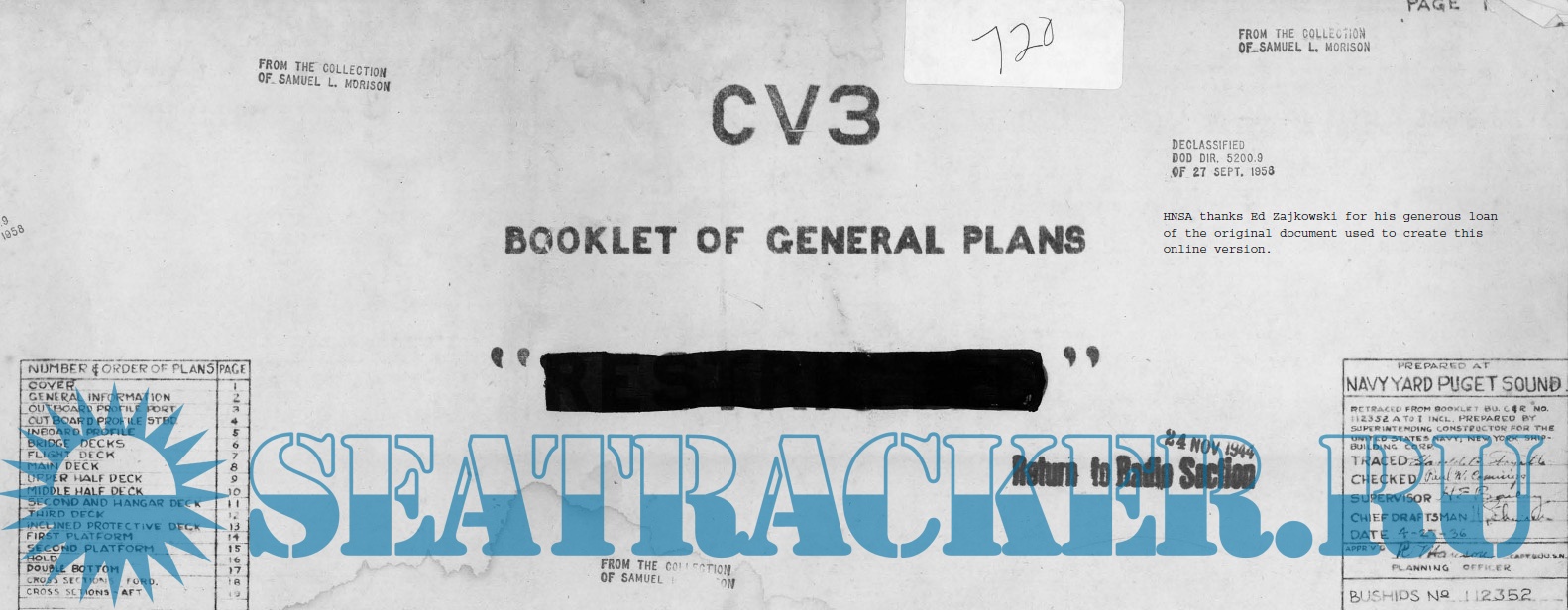 19 листов архивных чертежей авианосца США USS Saratoga CV3 по состоянию на 1946 год.