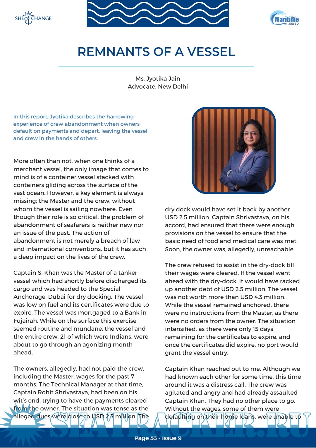 This issue commemorates the International Day for Women in Maritime, which is observed on May 18th, by highlighting the accomplishments and inspirational journeys of some exceptional women professionals, many of whom are women who have been appointed for the first time in roles previously held only by men in the shipping industry.