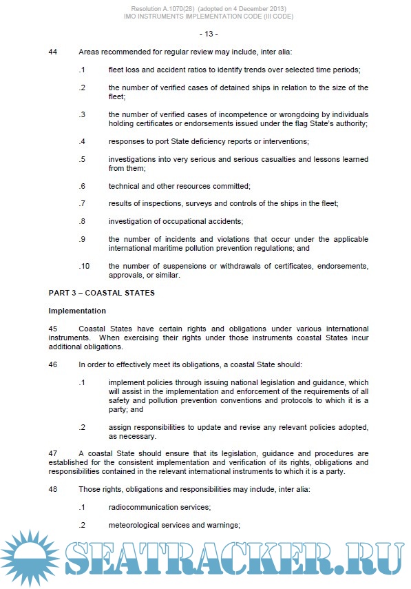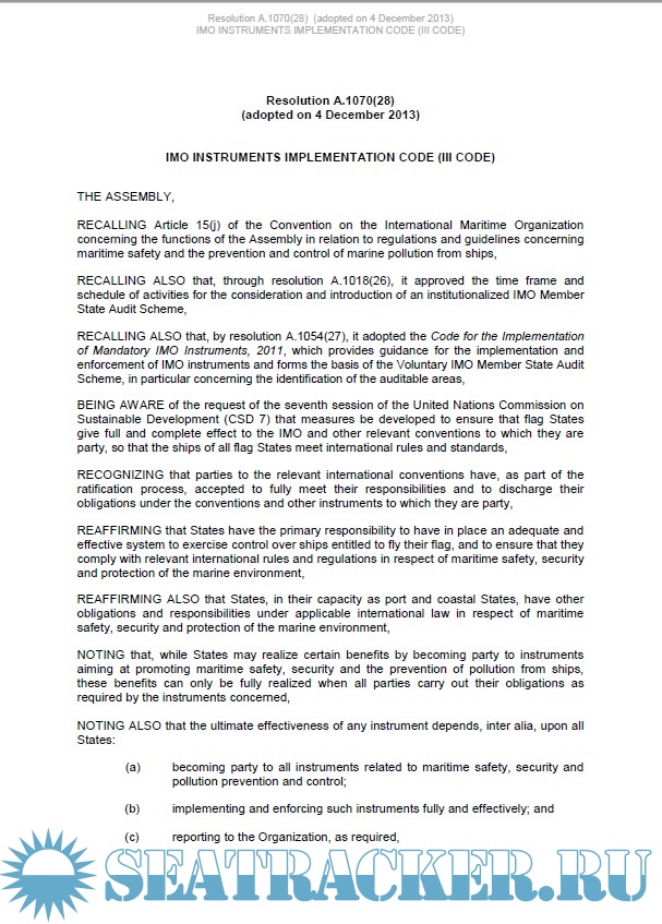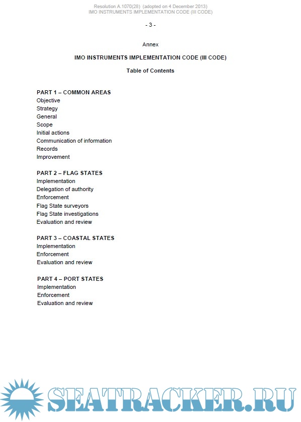 Description: The IMO Instruments Implementation Code (aka III Code or IIIC) is the key instrument behind the IMO Member State Audit Scheme. It provides a Code that all Member States are audited against to assess capability and resources to satisfy international obligations in terms of Port State, Coastal State and Flag State.
