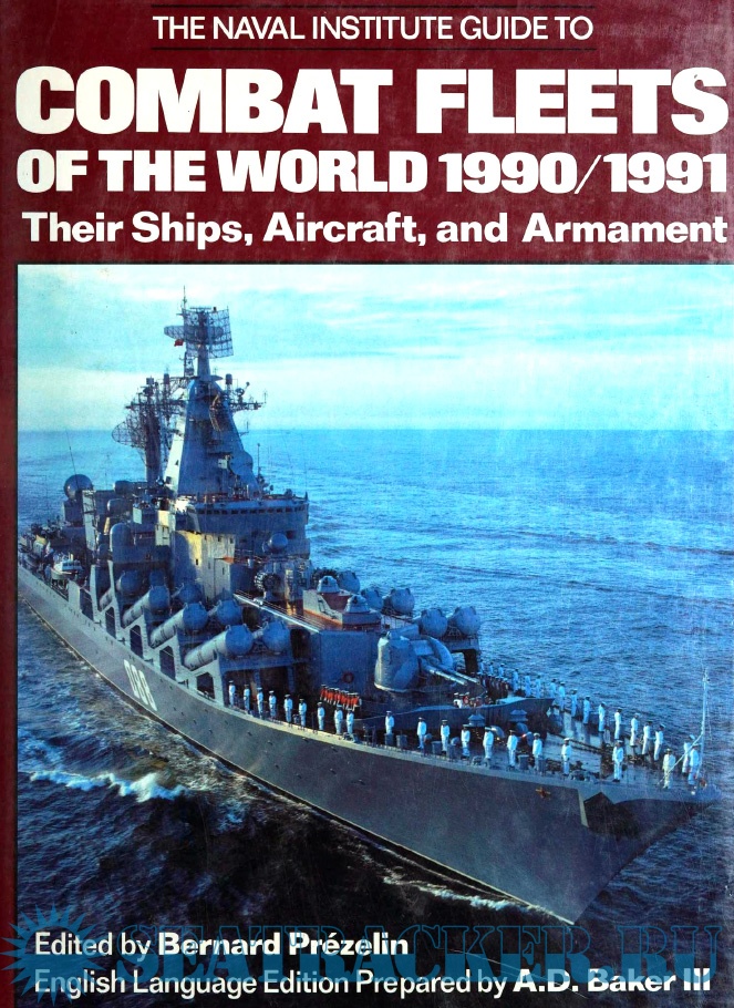 Year: 1990 Language: english Author: Bernard Prezelin, A.D. Barker Genre: Reference book Publisher: Naval Institute Press Format: PDF Quality: Scanned pages Pages count: 1000 Description: A reference work which describes entire naval programs, this guide contains essential data on ship characteristics, performance, crew complements, aircraft, electronics and weapons. There is coverage of more than 165 nations and the book is up-to-date with the latest developments.