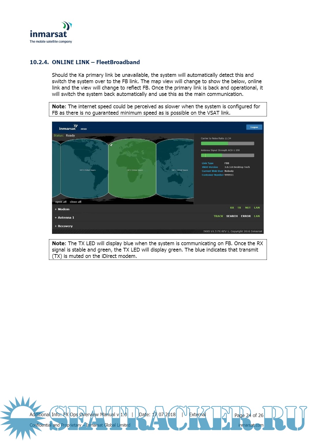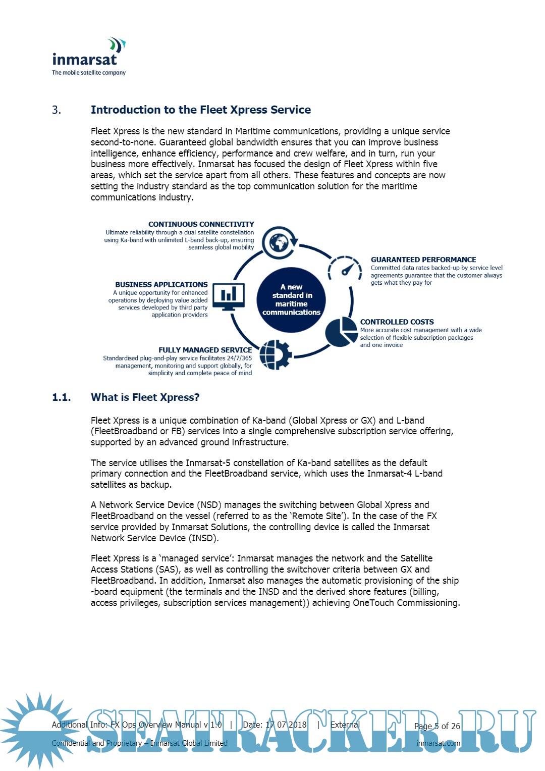 Description: This manual provides an overview of the basic operation of Inmarsat’s Fleet Xpress (FX) service, and serves as a tool to assist FX customers to increase efficiency of communication and minimize troubleshooting time when in contact with Inmarsat support teams.