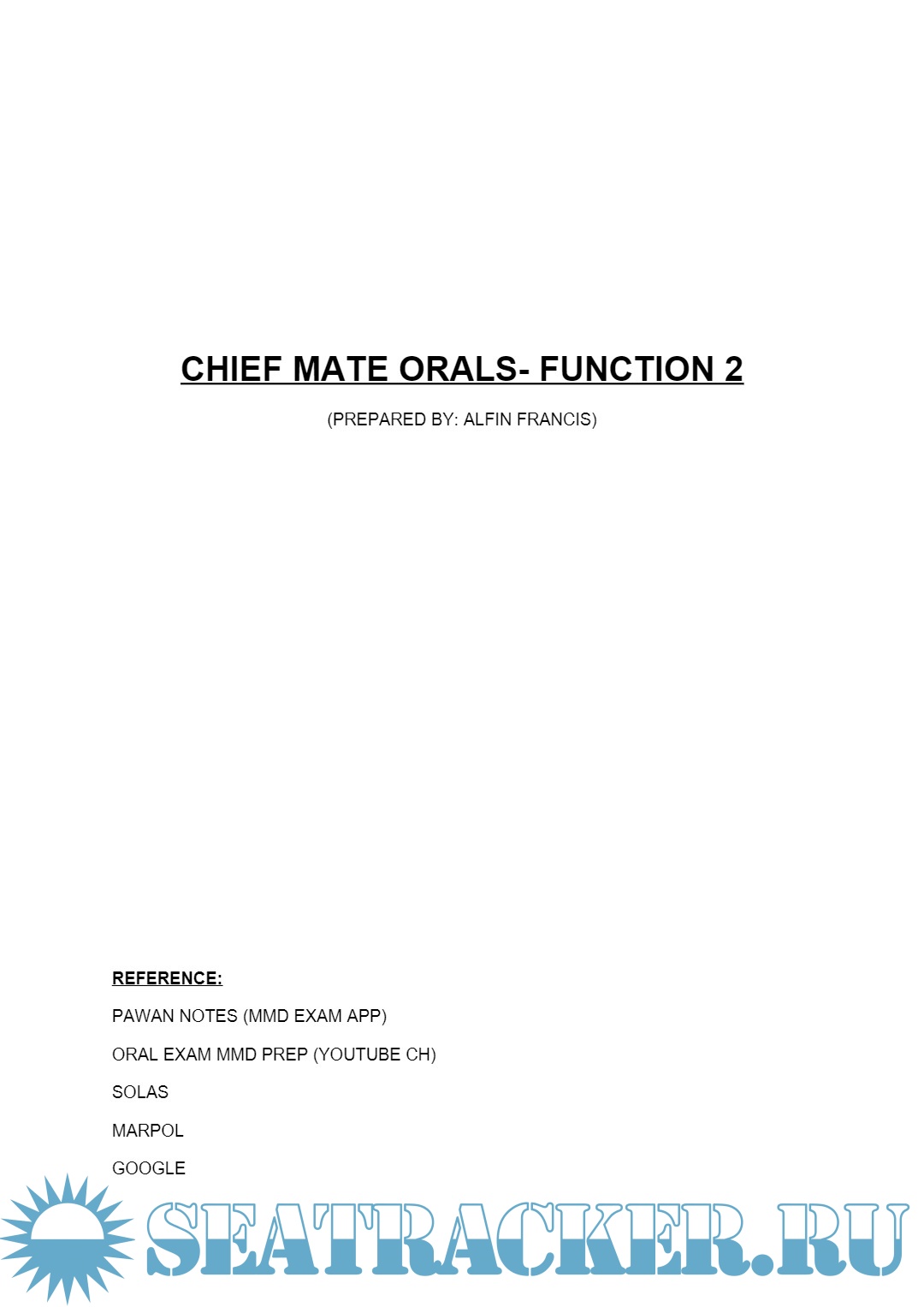 Oral Notes (Function 2) for Chief Mate F.G. Mercantile Marine Department (MMD), India Examinations…