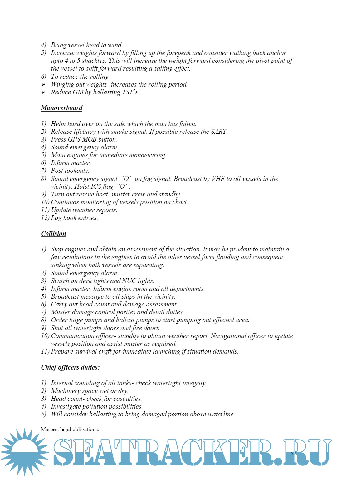Safety Notes for Phase II (Chief Mate F.G.) Mercantile Marine Department (MMD), India Examinations.…