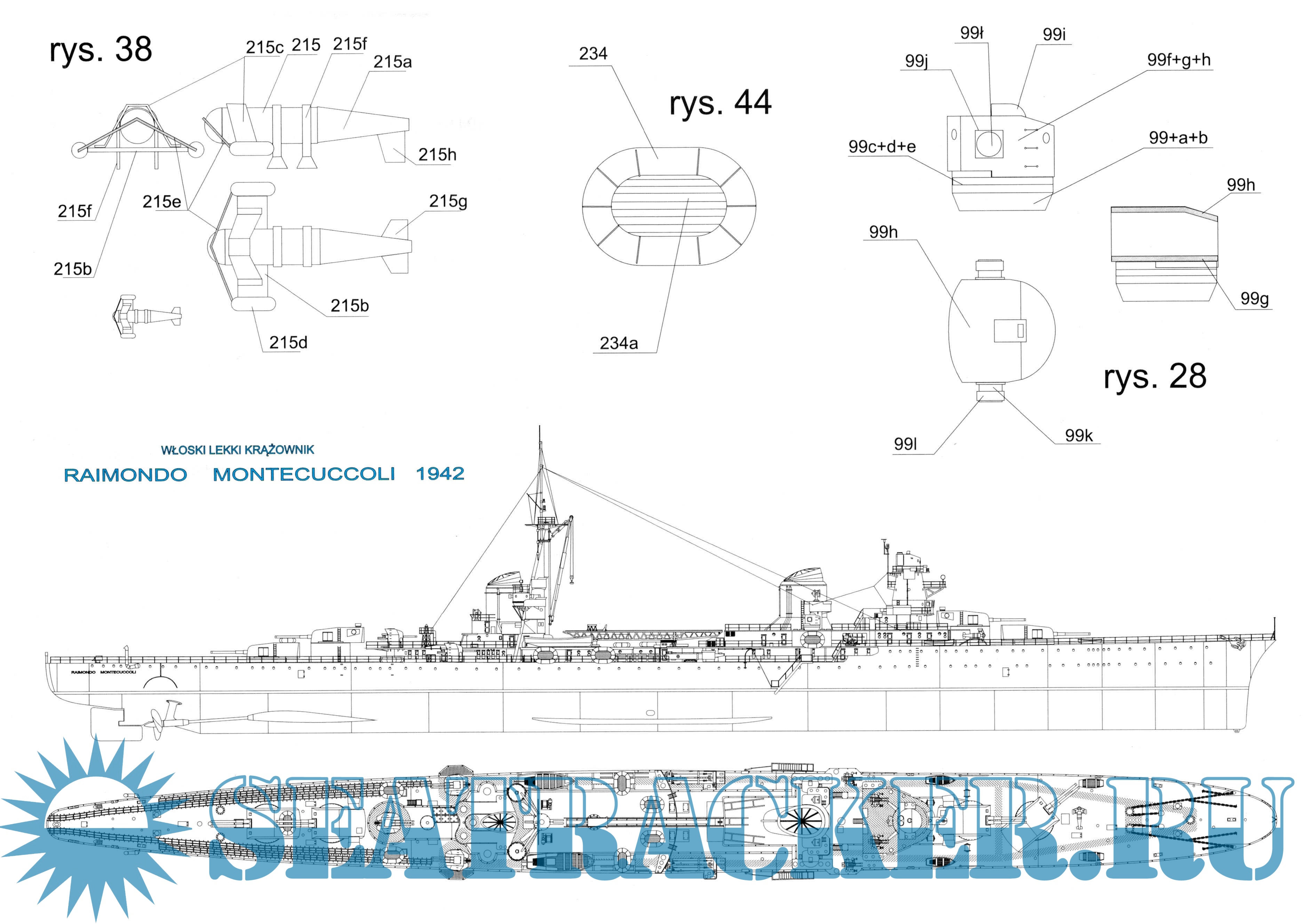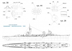 29листов цветных выкроек и инструкций по изготовления модели из бумаги итальянского лёгкого крейсера " Raimondo Montecuccoli" в масштабе 1:200