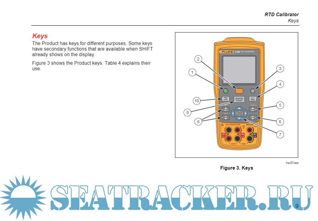 Description: Fluke 712B RTD Calibrator (the Product) is a handheld, battery-operated instrument that measures and sources a variety of RTDs. It also has an isolated channel to