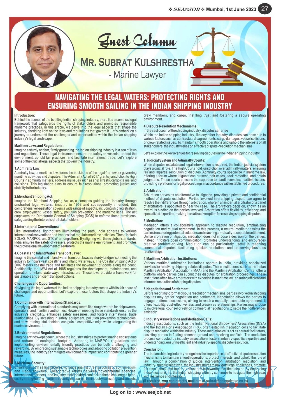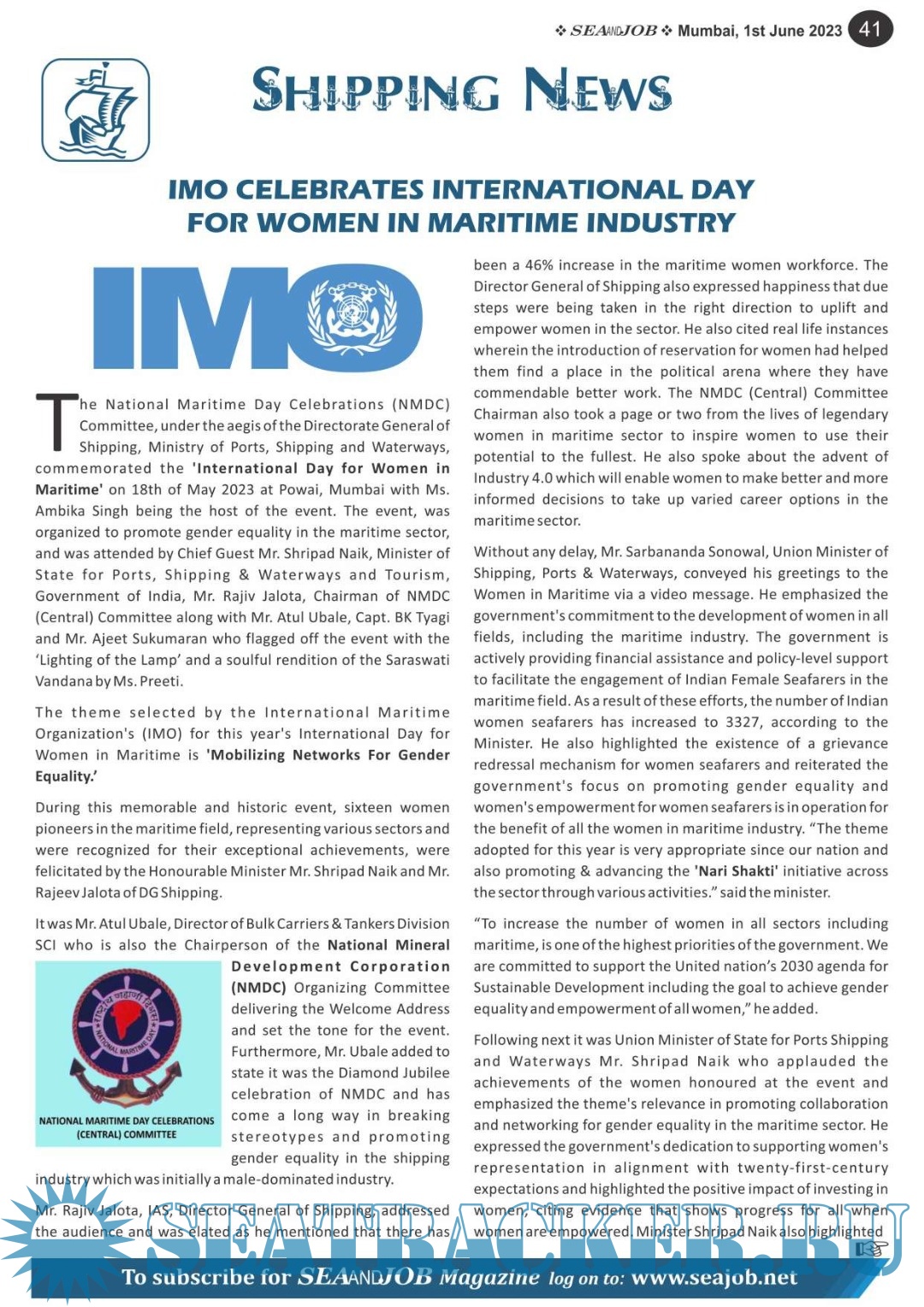 Description: The Sea and Job magazine launched in May 2007, was the second venture of Sea Line Group succeeding 'seajob.net' bringing the much renowned essence to the Group, the Sea and Job Magazine quickly gained popularity, becoming the No. 1 Shipping Magazine that came to be widely circulated all over India. Sea and Job over the years has evolved as the most trusted, ethical, objective and read maritime publication that possesses a large database of subscribers from various verticals in the industry.The magazine provides informative and interesting articles covering not just the shipping world but also the world outside it.Sea and Job is also a medium for the shipping/ manning companies to advertise marine jobs and also to promote their organization by publicizing internal activities like seminars, sports events and parties.Some notable endeavors of the magazine include the Know Your Recruiter Column, the Sailing Episodes Column and the Marine Insights section. The consistent efforts and the dedication to provide extraordinary services to the industry has resulted in the magnifying popularity and patronage of Sea and Job.