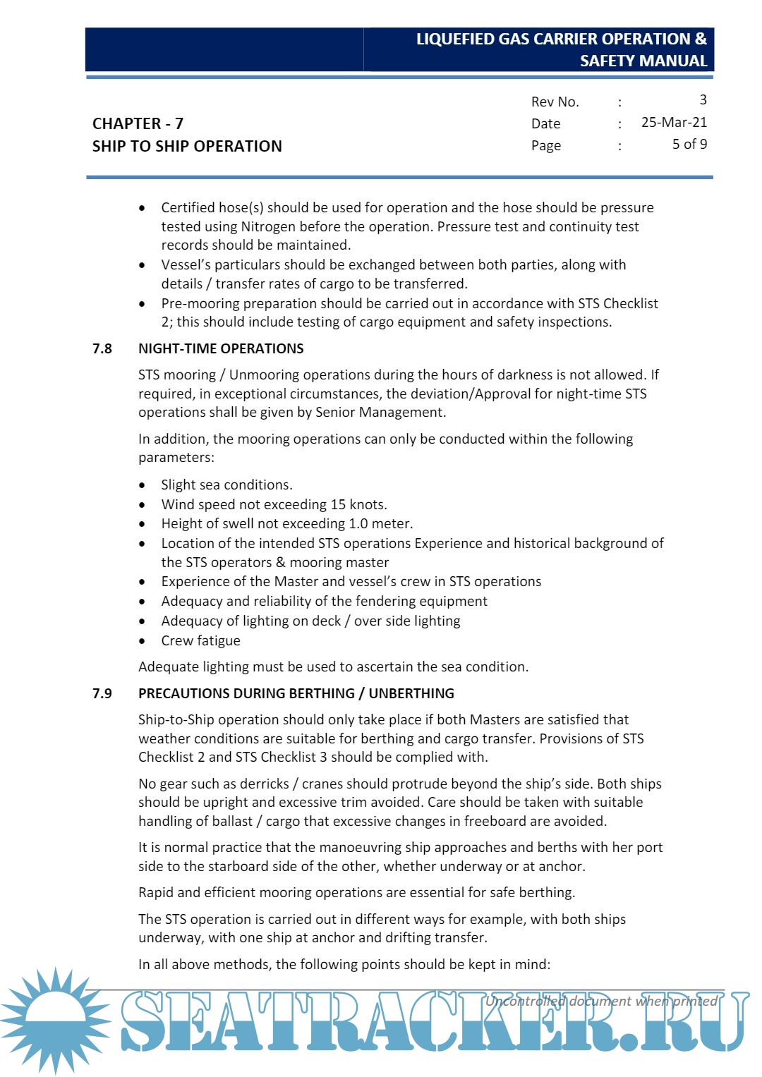 Description: This Manual is issued to assist all personnel involved in the operation of Liquefied Gas Carriers carrying Liquefied Petroleum and Liquefied Chemical Gases, to carry out their duties in a safe and efficient manner.