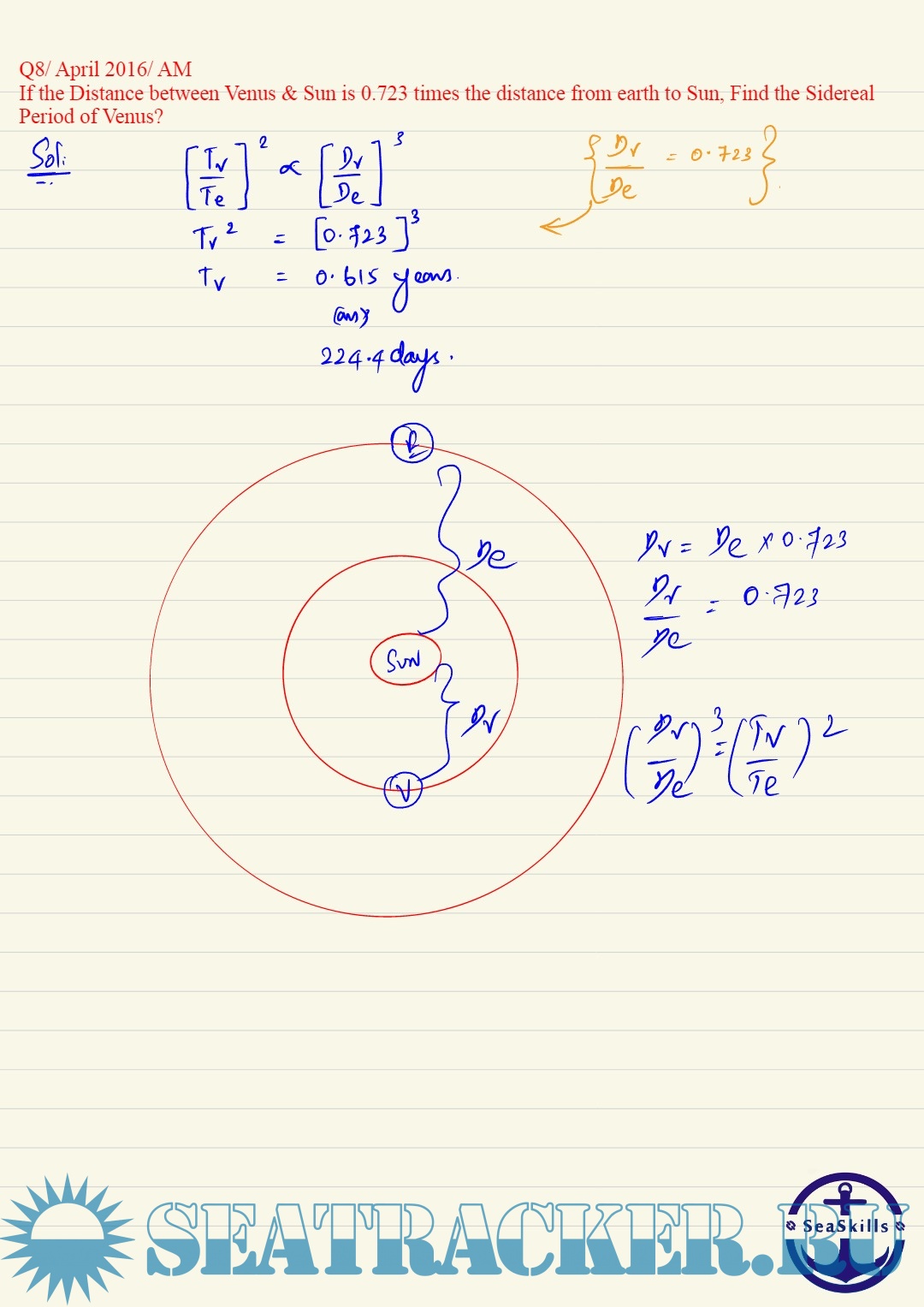Navigation - Section C: Kepler's Law of Planetary Motion (Theory and Numerical) from Past Question Papers of Mercantile Marine Department (MMD), India Examinations for Phase I (Chief Mate F.G.)