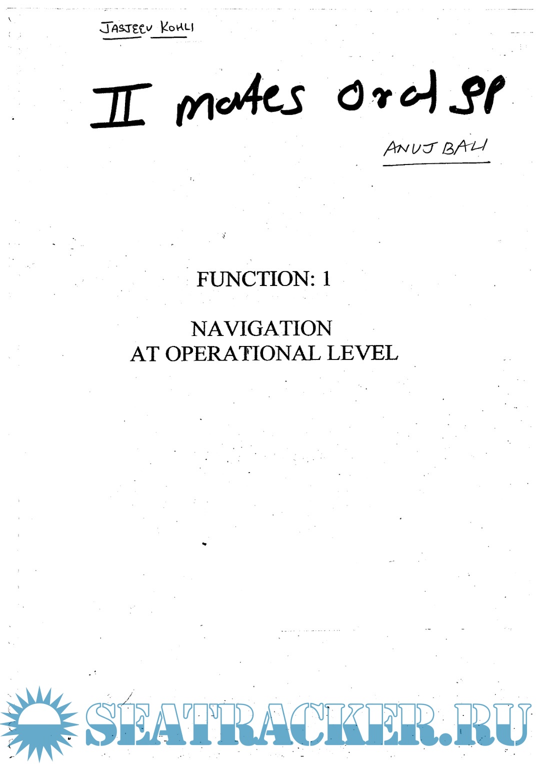 Description: Second Mates F.G. Oral Notes for Mercantile Marine Department (MMD), India Examinations: Function 1, 2 & 3