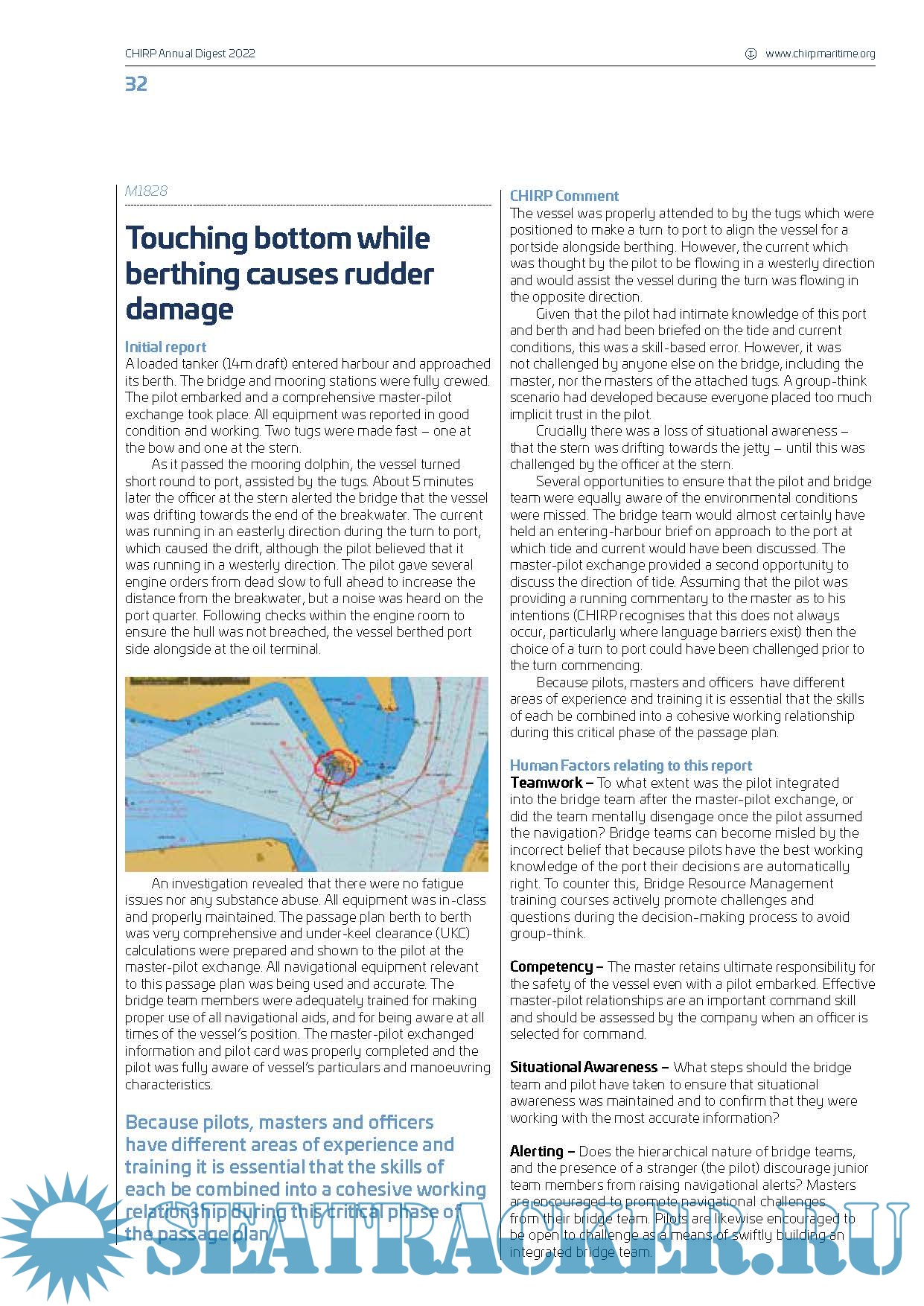 The Digest categorises incidents according to human factors, deck safety, engineering, technological, environmental, pilotage, COLREGs/navigation, safety culture and health and etc