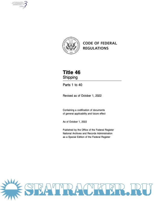 Code of Federal Regulations CFR 46 Shipping Volumes 1 - 9 dated October 1, 2022Screenshots