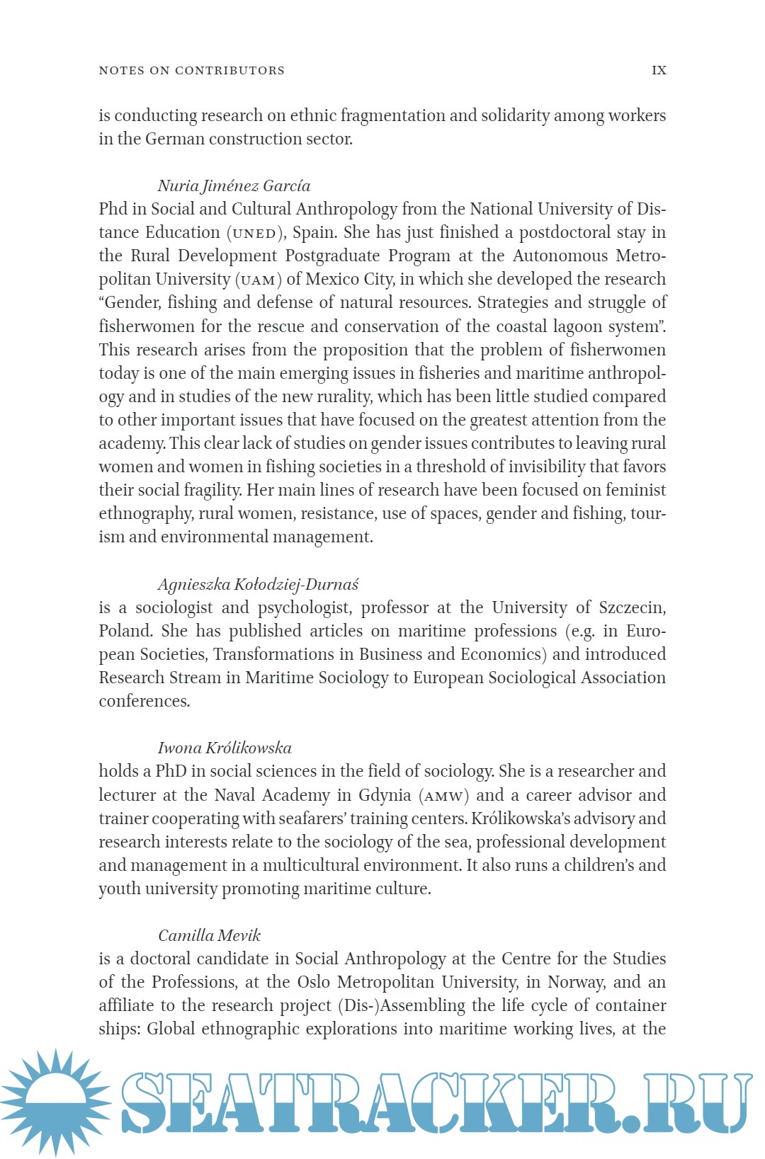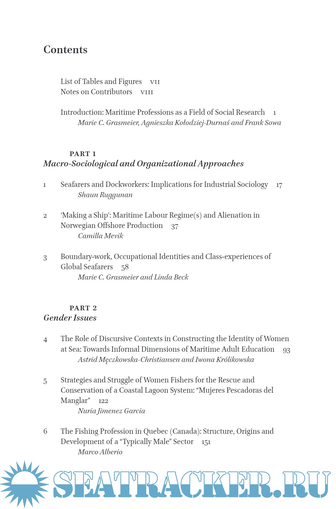Year: 2023 Language: english Author: Agnieszka Kołodziej-Durnaś, Frank Sowa and Marie C. Grasmeier Genre: Textbook Publisher: BRILL Edition: 1 ISBN: 978-90-04-51884-1 Format: PDF Quality: eBook Pages count: 269 Description: Introduction to this Volume On a global scale, more than 40 million people make their living working directly at sea as fishers, seafarers, in aquaculture or seabed-mining, or related occupations such as dockworkers, shipbuilding, logistics, maritime administration, secondary branches of shipping, marine tourism and other maritime professions. Moreover, the world as we know it today would be inconceivable without the maritime economy and the people who work in such maritime professions (Kołodziej, 2022). Significant social developments such as industrialisation or globalisation are historically and currently closely entangled with the phenomenon that the Polish maritime sociologist Ludwik Janiszewski named ‘marinization’ (‘marynizacja’) (Janiszewski, 1988; see also: Kołodziej & Kołodziej- Durnaś, 2022). With this concept, Janiszewski refers to a development of increasing importance for human life and society, an increasing entanglement of the terrestrial with the maritime realm (Kołodziej, 2019; Bryniewicz, 2004).