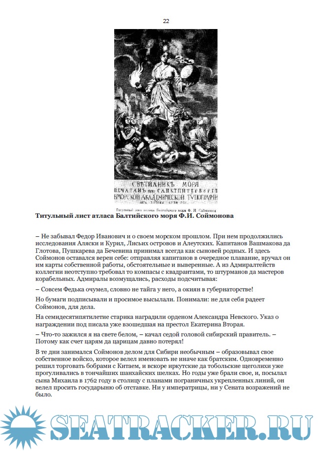 Жизнь Фёдора Ивановича Соймонова – это исторический роман, где было всё – уважение Петра 1 и десятилетняя каторга в Охотске, звание первого гидрографа России и губернаторство над всей Сибирью, уважение простых моряков за честное служение родине.