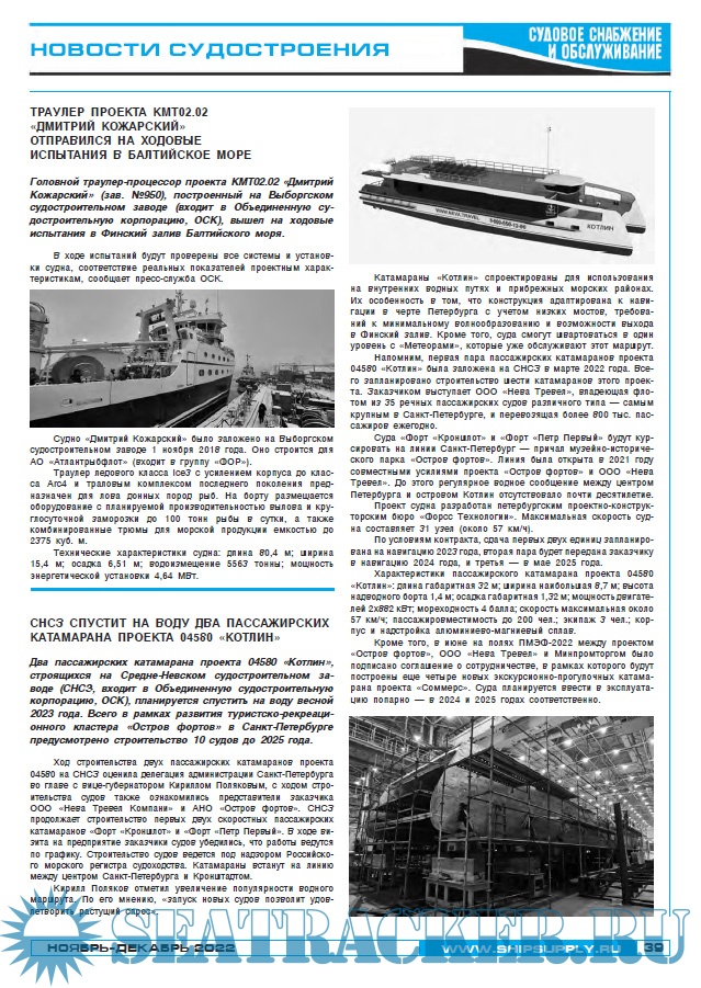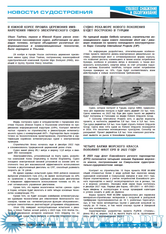 Описание: Судовое снабжение и обслуживание - периодический информационный бюллетень, издается с 1999 года и в настоящее время по праву занимает одно из ведущих мест среди специализированных отраслевых печатных изданий.Бюллетень стал надежным маркетинговым инструментом для технического менеджмента судостроительных, судоремонтных и снабженческих компаний. Более 500 отечественных и зарубежных фирм рекламодателей успешно сотрудничают с журналом с целью расширения своего бизнеса.Бесспорным преимуществом является бесплатное распространение издания целевой адресной рассылкой: судостроительным и судоремонтным предприятиям; морским и речным портам; судовладельцам морского, речного, промыслового флота; производителям и поставщикам судового оборудования, снабжения и материалов; предприятиям обслуживания флота (всего более 9000 компаний РФ).В журнале представлен весь спектр судового оборудования, комплектующих, запчастей, снабжения и материалов (с указанием контактных данных фирм производителей и поставщиков).