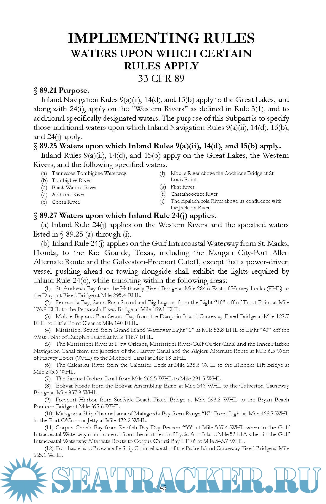 These Rules are applicable on waters outside of established navigational lines of demarcation. The lines are called COLREGS Demarcation Lines and delineate those waters upon which mariners shall comply with the Inland and International Rules. COLREGS Demarcation Lines are contained in this book.