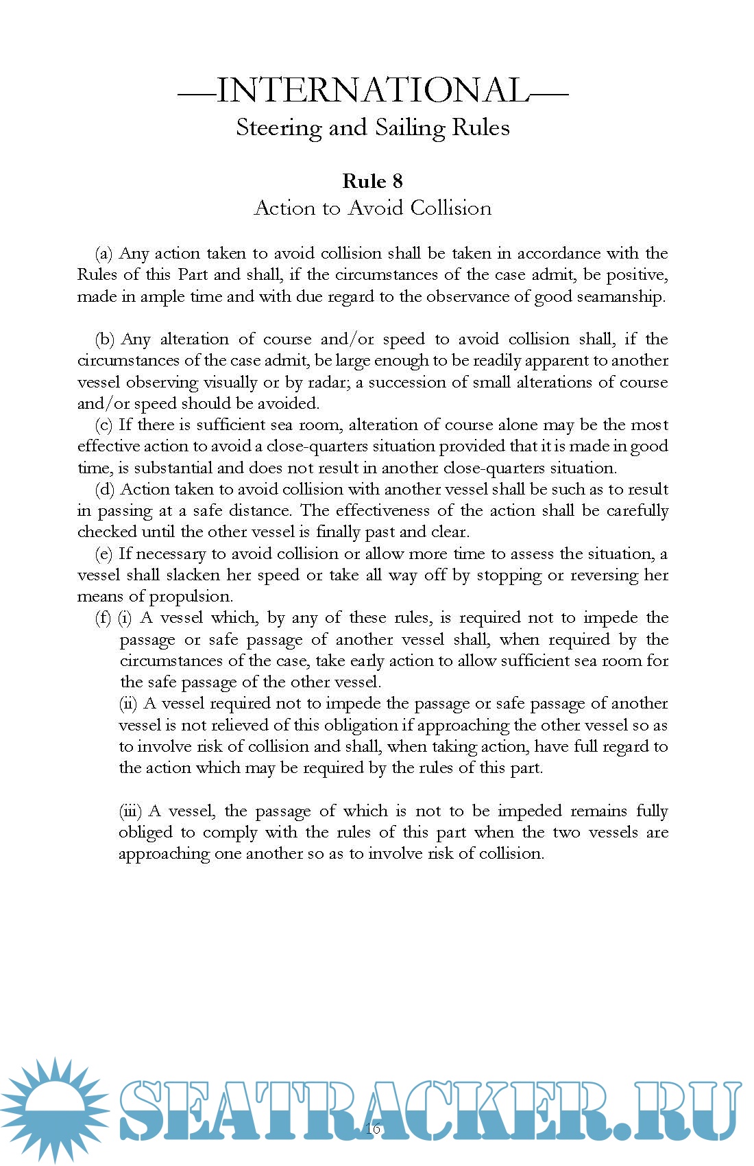 Description: The International Rules in this book were formalized in the Convention on the International Regulations for Preventing Collisions at Sea, 1972, and became effective on July 15, 1977. The Rules (commonly called 72 COLREGS) are part of the Convention, and vessels flying the flags of states ratifying the treaty are bound to the Rules. The United States has ratified this treaty and all United States flag vessels must adhere to these Rules where applicable.