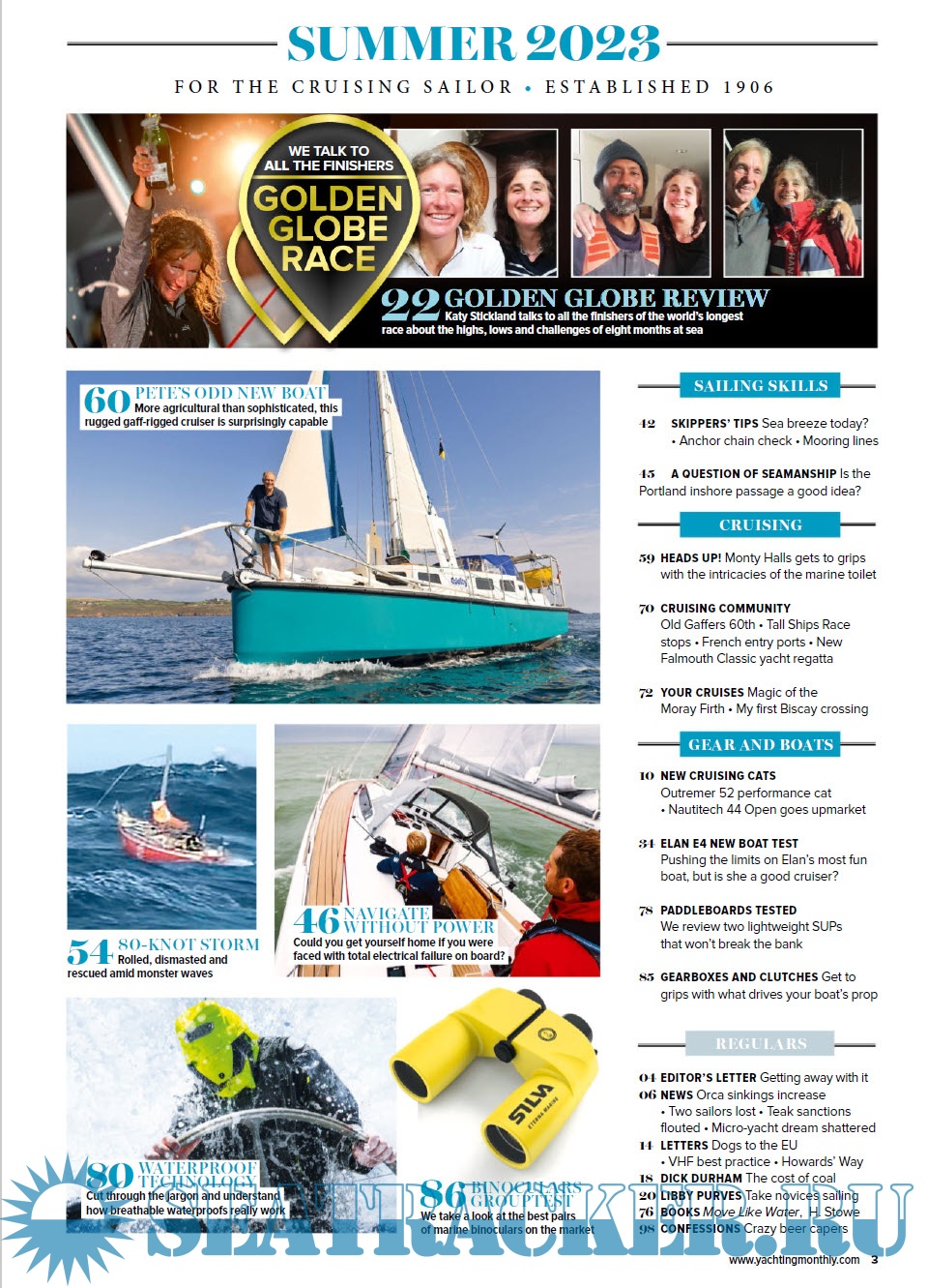 Year: 2023 Language: English Editor: Theo Stocker Genre: Periodical (magazine) Publisher: Future Publishing Limited Edition: Summer 2023 Format: PDF Quality: eBook Pages count: 100 Description: Yachting Monthly is at the heart of the British yachting market and is for people who actively sail their boats – whether cruising across the channel, around the coast or further afield in blue waters.It provides an entertaining mix of vital information for cruising yachtsmen with all levels of experience, which maximises their enjoyment, increases their skills and gives them the confidence to broaden their horizons.