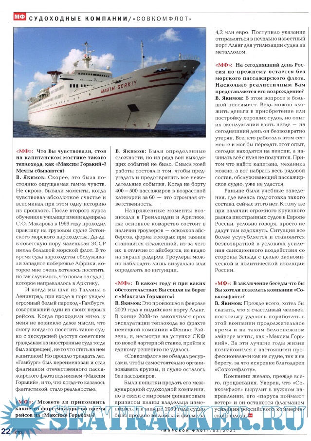 Описание: Информационно-аналитический журнал «Морской флот» освещает деятельность российского судоходства и всех процессов, связанных с морскими перевозками внешнеторговых грузов РФ. Первый номер журнала вышел 1886 году.