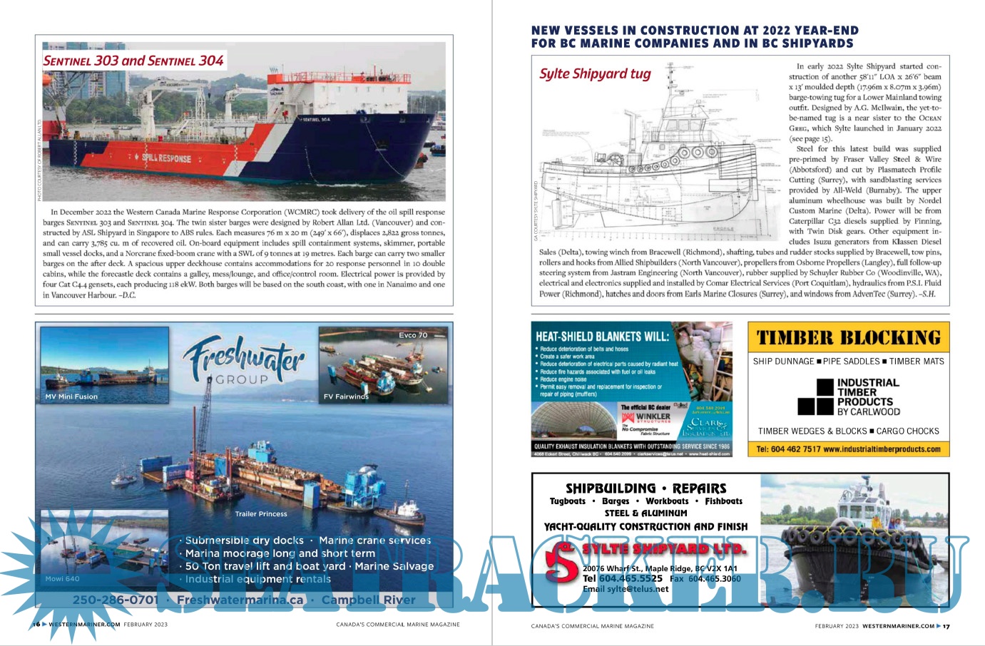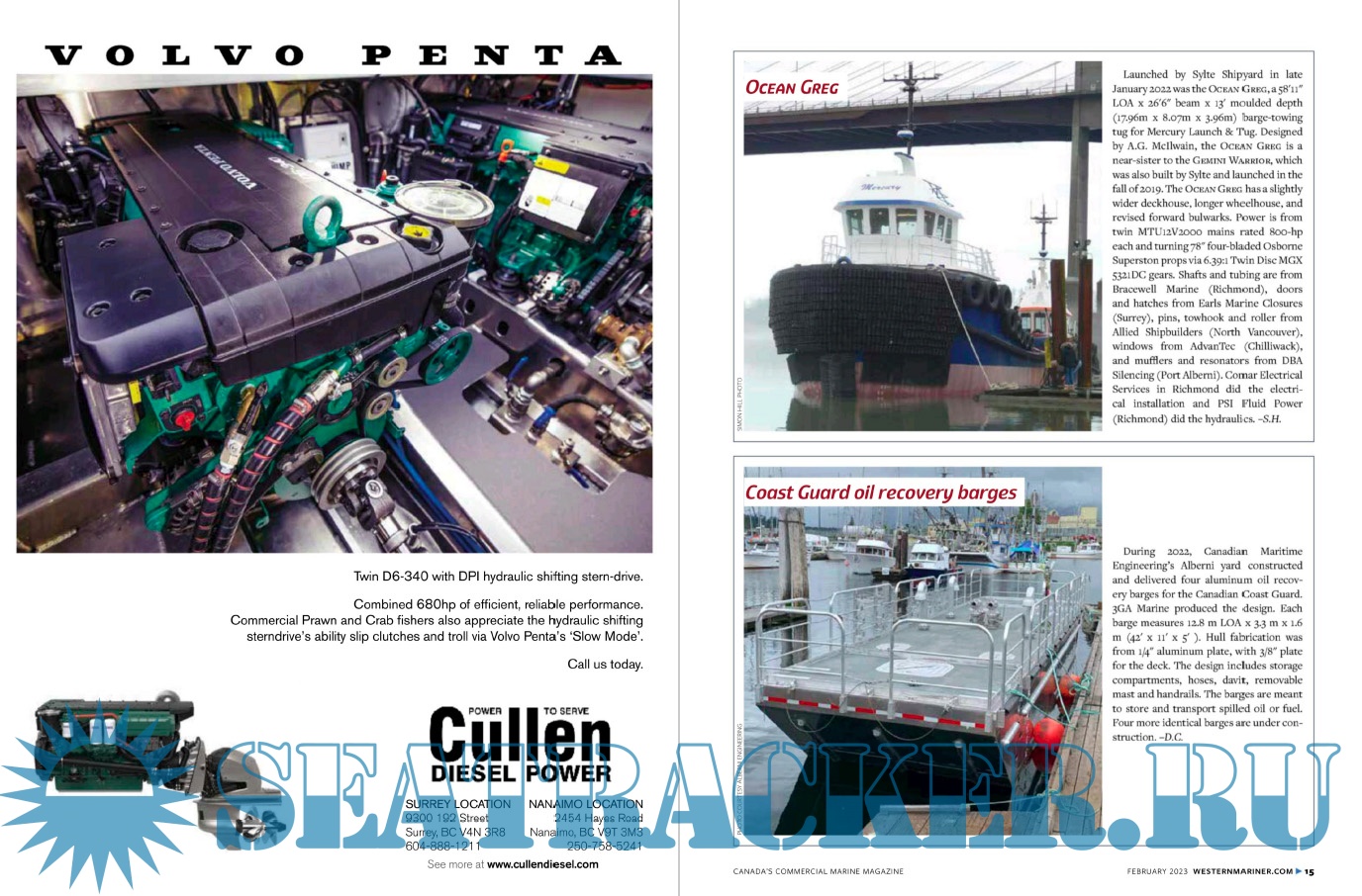 Year: 2023 Language: english Author: Somon Hill (Editor) Genre: Periodical (magazine) Edition: 2023-02 Format: PDF Quality: eBook Pages count: 56 Description: We reach more than 20,000 print and e-readers every month: vessel and fleet owners, boat builders and repairers, captains and crews on tugs, crew boats, ferries, workboats, fishing vessels and the businesses and people who support and supply them. Our writers and editors travel the coast to provide informative feature articles on the working waterfront. Our columnists offer insights into marine legal issues, ports and terminals, and entertainment and education for marine professionals.