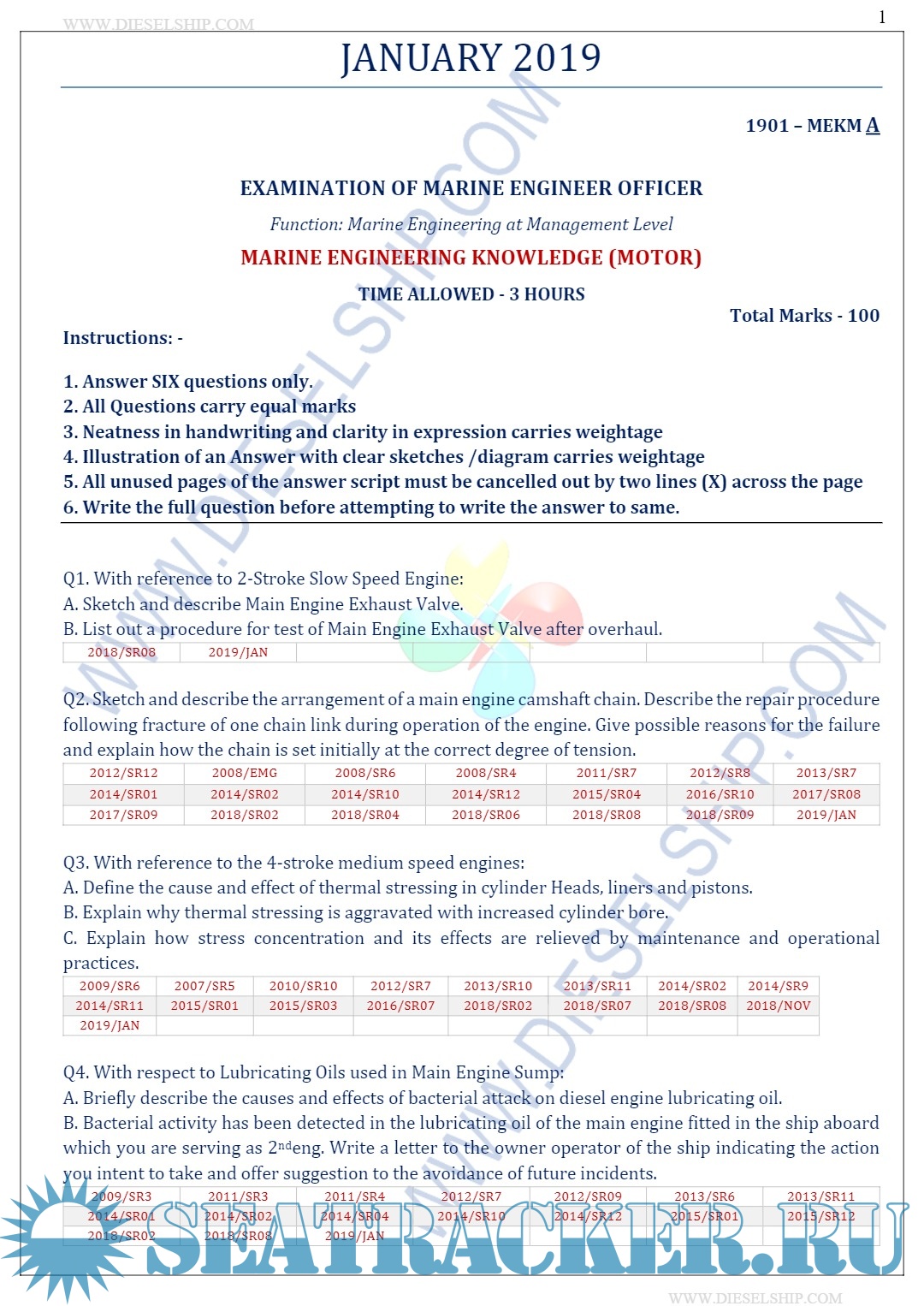 Description: M.E.O. Class II Question Paper set for Mercantile Marine Department (MMD), D.G. Shipping India Exams.