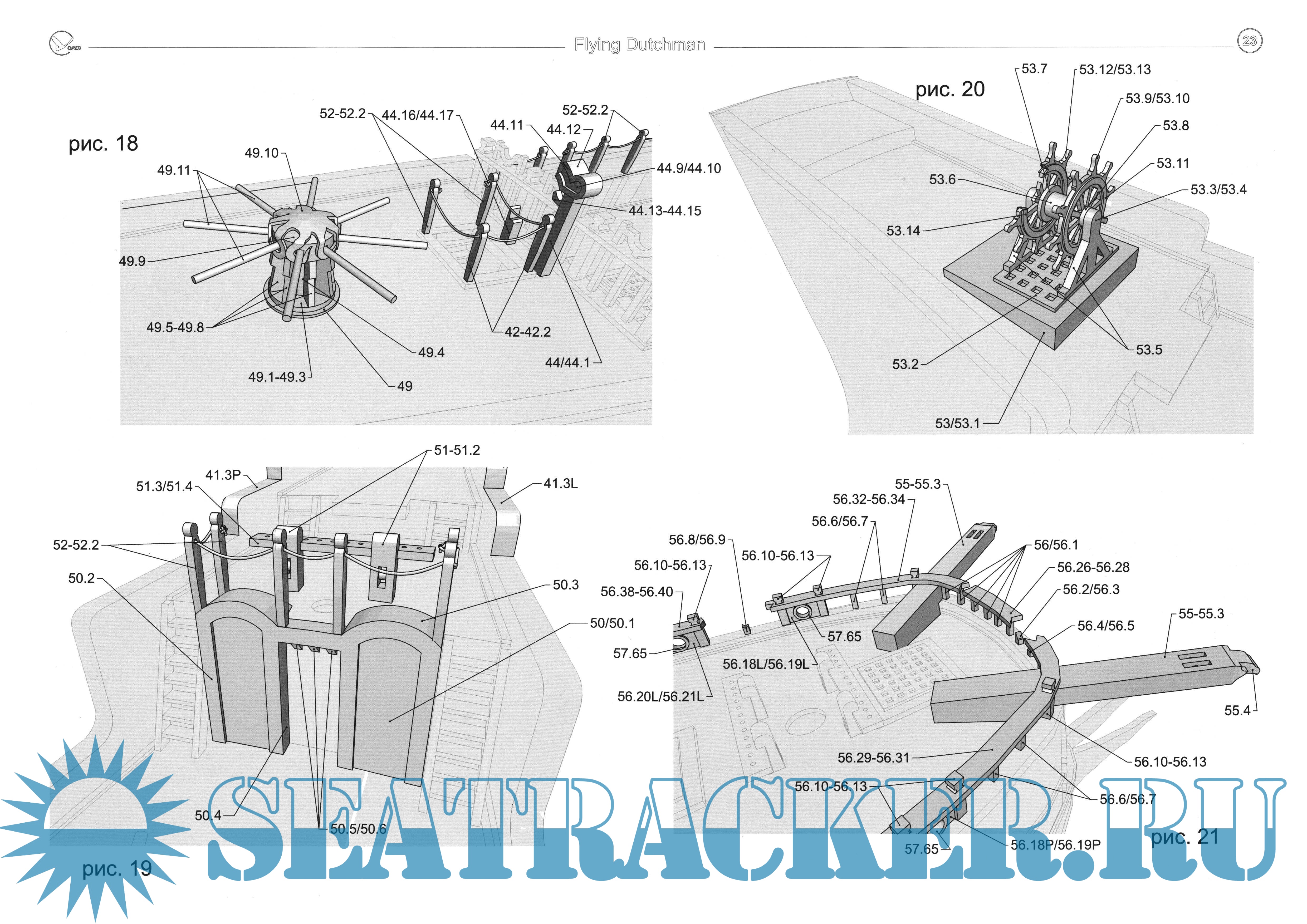 27 листов цветных выкроек и описаний для создания бумажной модели галеона "Flying Dutchma" из фильма "Пираты Карибского моря. На краю света", 2007 год в масштабе 1:100Скриншоты