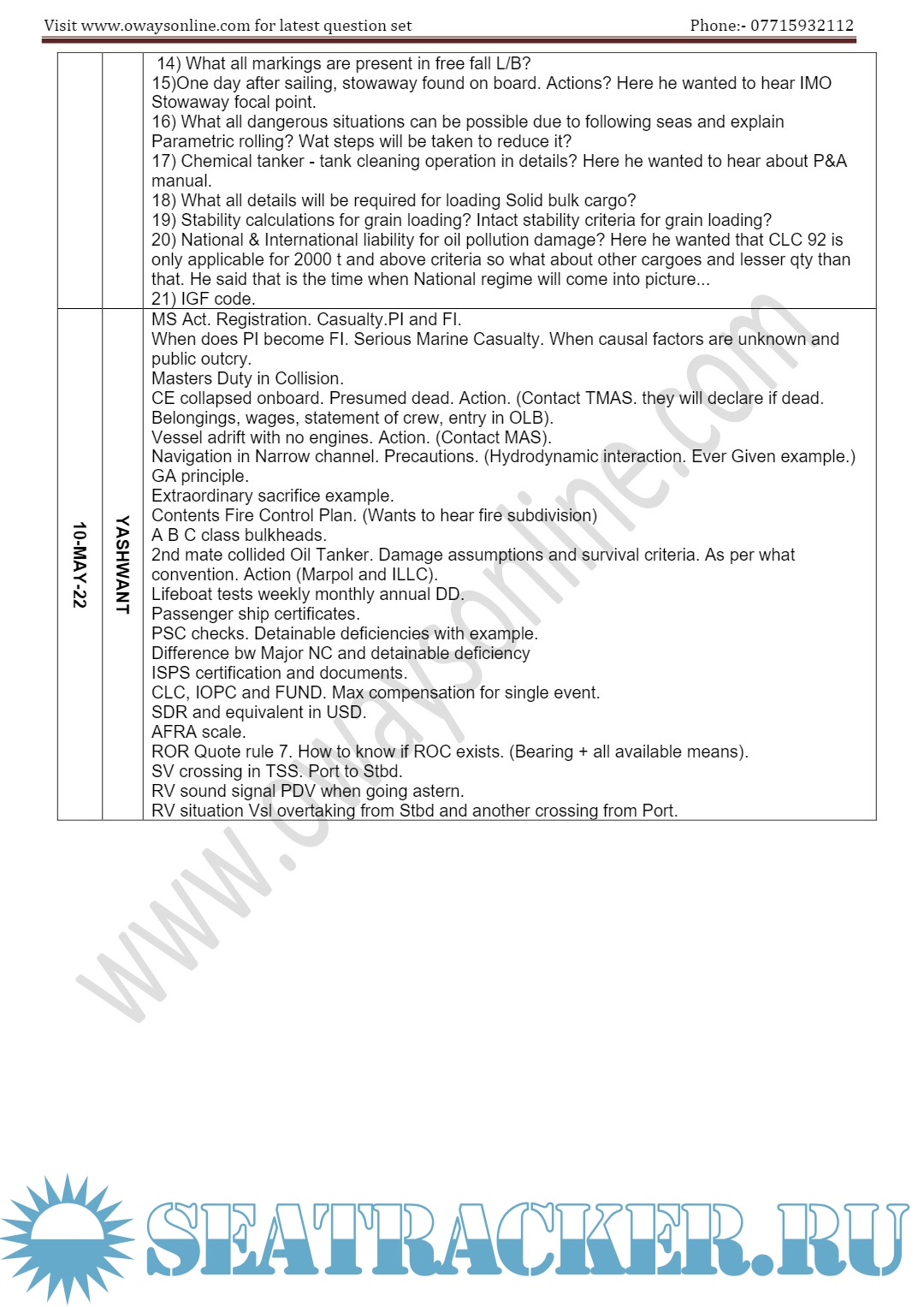 Description: Orals Question Bank for ASM (Advanced Shipboard Management) / Master's Mercantile Marine Department (MMD), India Examinations.