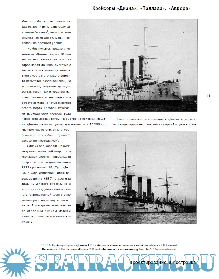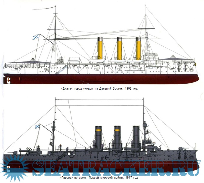 Проектирование и постройка. Конструкция крейсеров типа "Диана". "Диана" и "Паллада" в 1902 - 1903 годах. В обороне Порт-Артура. В сражении в Желтом море. Курс на Сайгон. "Аврора" в Русско-японской войне. "Диана" и "Аврора" в период между двумя войнами. В годы Первой мировой войны. Послесловие.