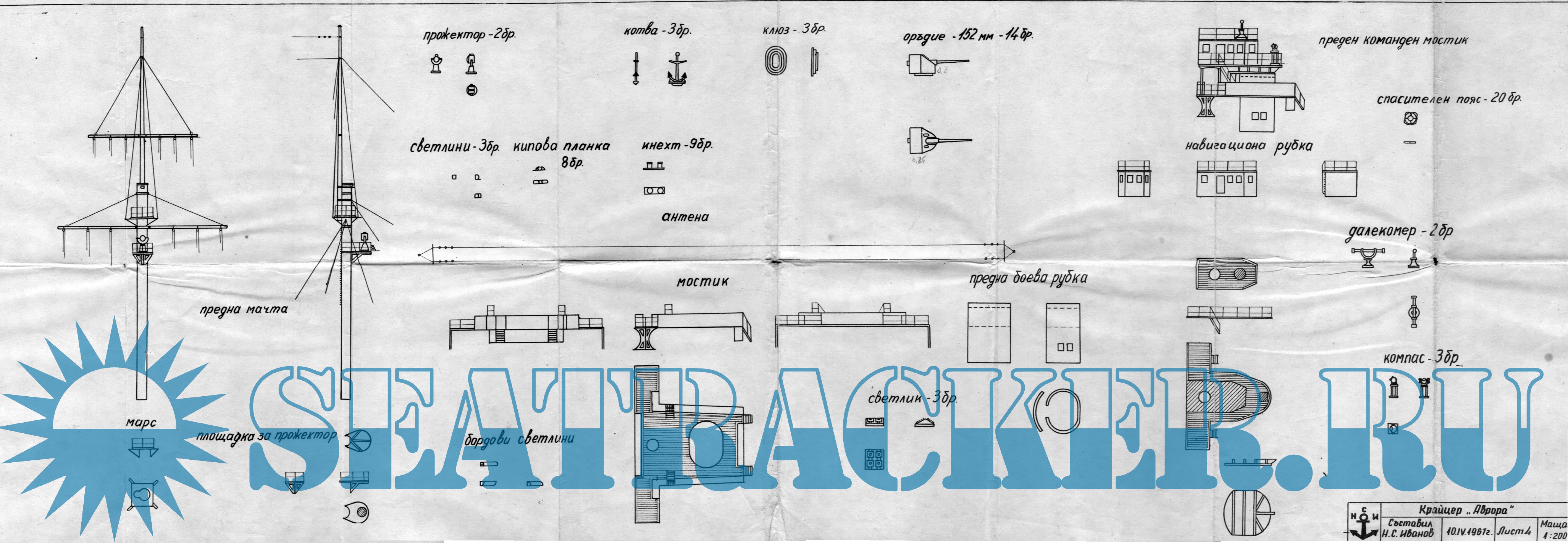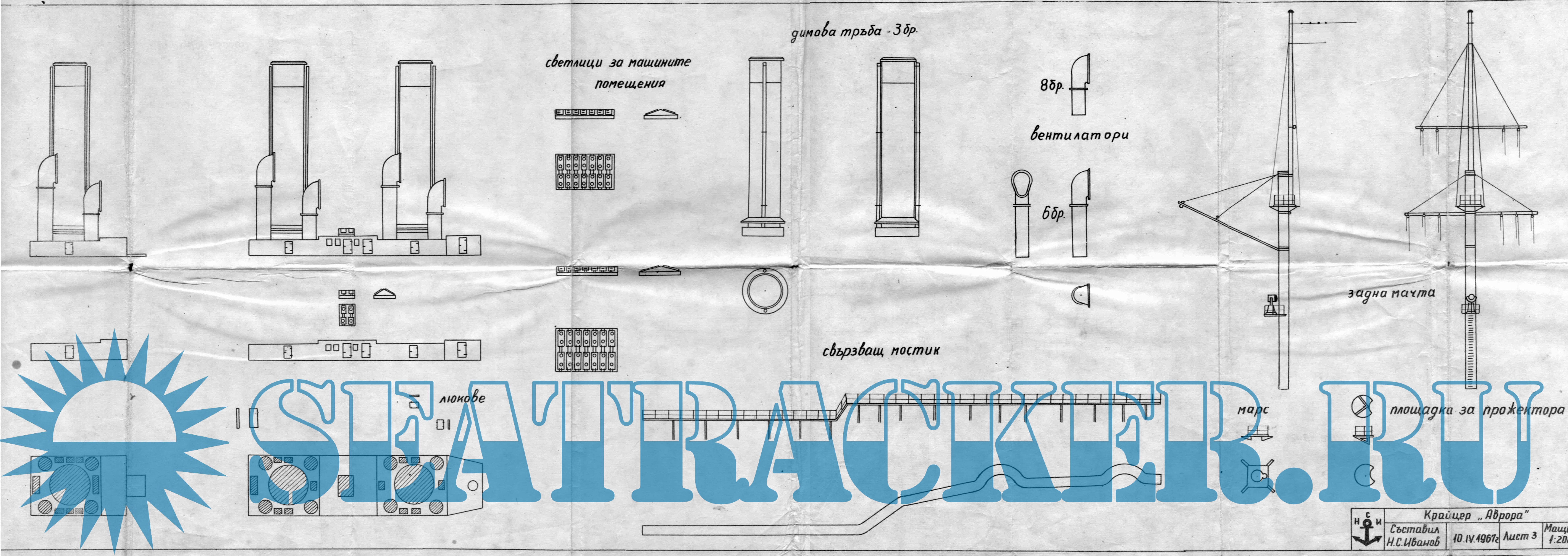 45 листов чертежей крейсера "Аврора" в масштабе 1:200