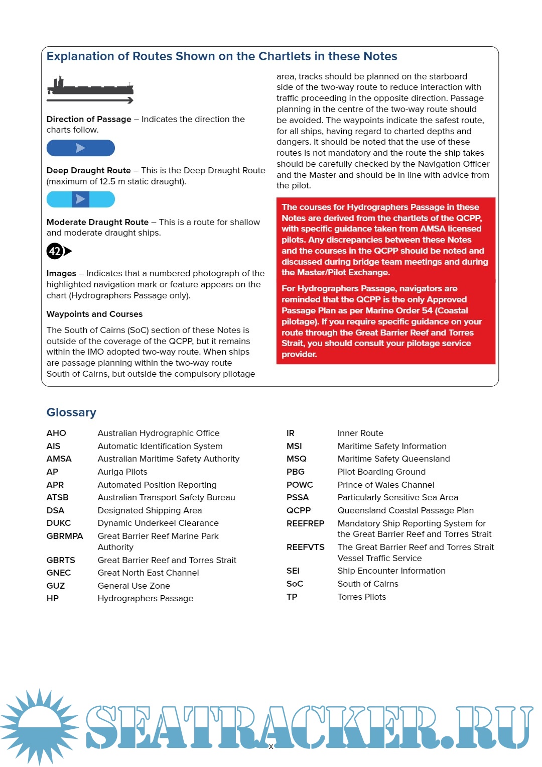 ‘Passage Planning Guide – Great Barrier Reef and Torres Strait’ contains in-depth descriptive narrative and pilot’s guidance for ships navigating through the Torres Strait, the Great North East Channel or the Inner Route to Cairns, using the routes defined in the AMSA QCPP.